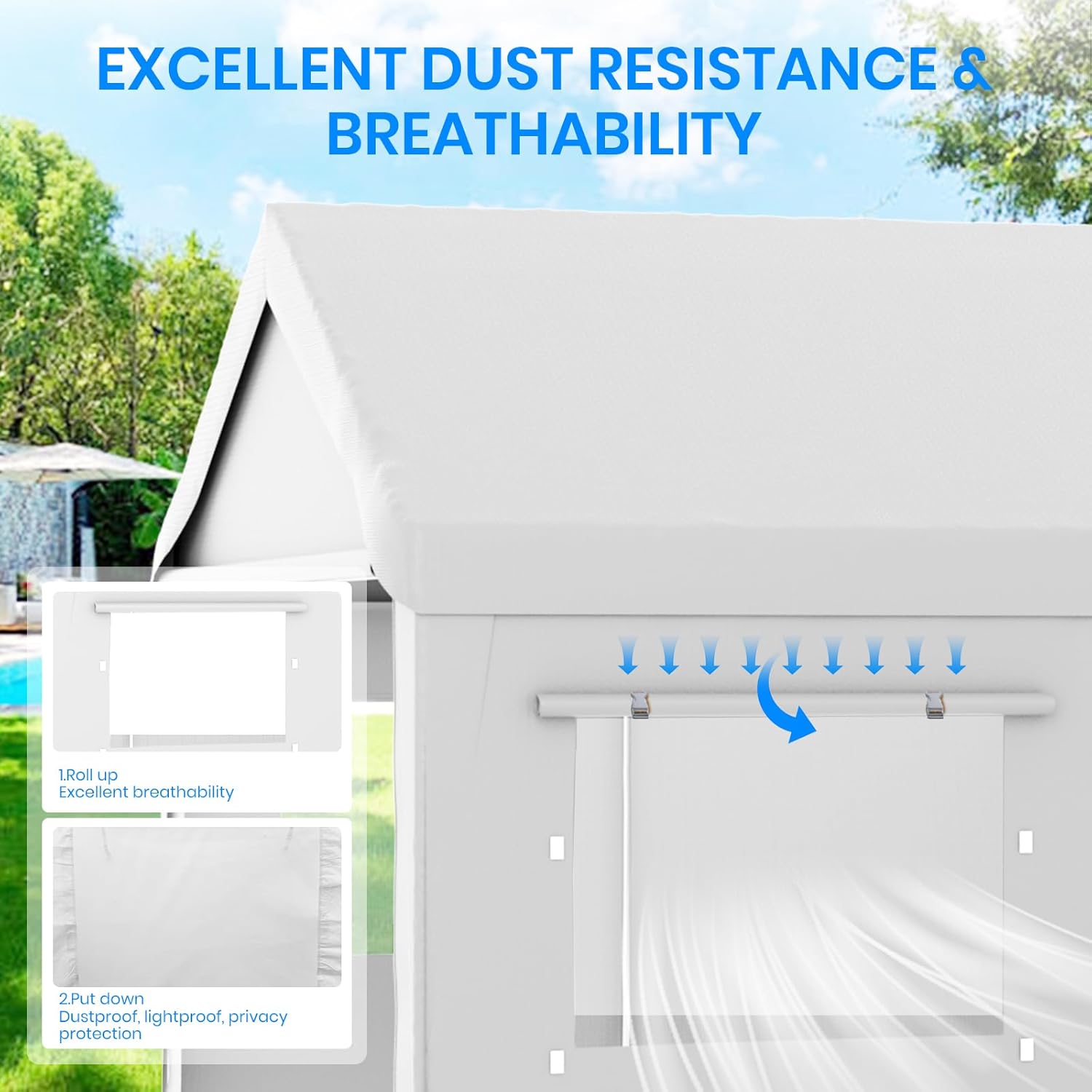 - Easy to Assemble & Portable Design:This portable garage carport is designed for easy assembly, with no need for professional help. Its lightweight yet sturdy frame makes it portable and convenient for temporary or seasonal use, perfect for anyone who needs a flexible outdoor shelter solution.