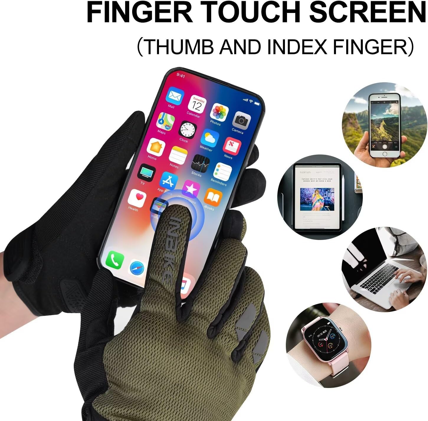 - ✔[Touchscreen]: This riding gloves use touchscreen material on both the thumb and index finger tips, allowing you to use a touchscreen device without removing your gloves.