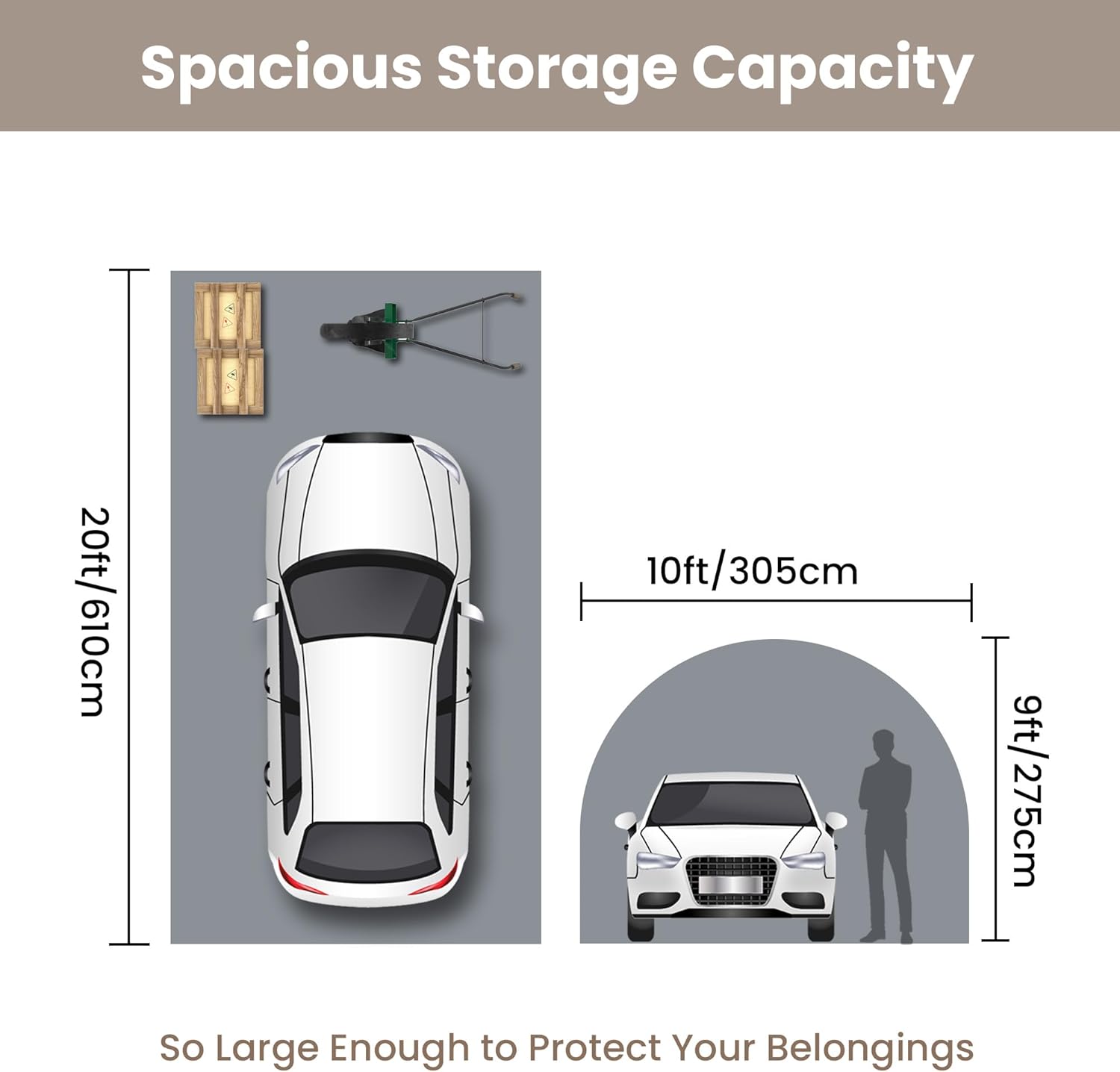 - ADEQUATE SIZED SPACE: With a spacious 10x20x9ft dimensions,It can serve as: A storage shed for firewood, lawn mowers, and outdoor equipment. A garden workshop for maintenance and DIY projects. An outdoor utility shelter for tools and seasonal items. A versatile event space for family gatherings, picnics, camping, or even as a tent base.