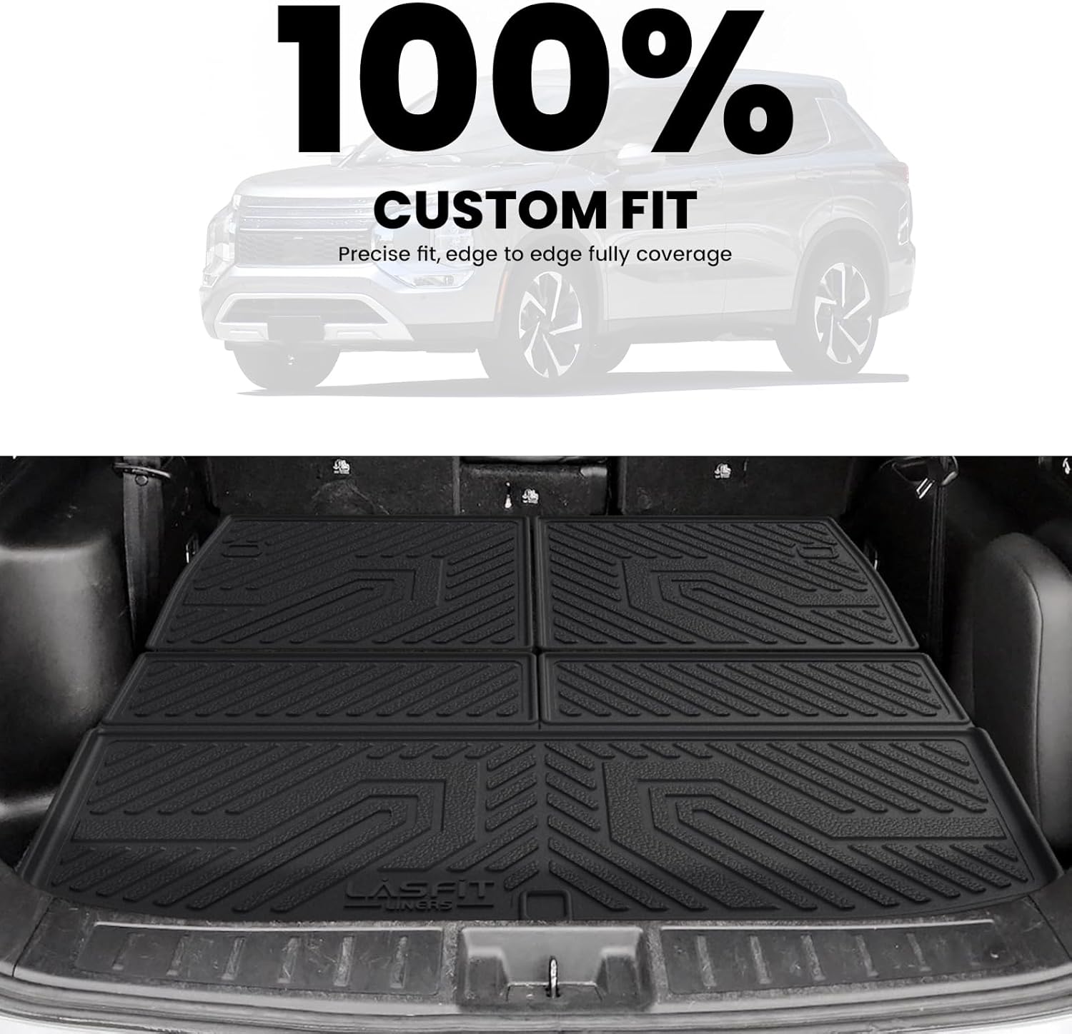 - CUSTOM FIT - This LASFIT Backrest & Cargo Mat is specifically designed for Mitsubishi Outlander 2022-2025 models. The precise cut ensures no gaps or shifting, providing a seamless and secure fit. No need to worry about compatibility issues or misfitsâinstall it effortlessly and enjoy the perfect coverage for your trunk space.