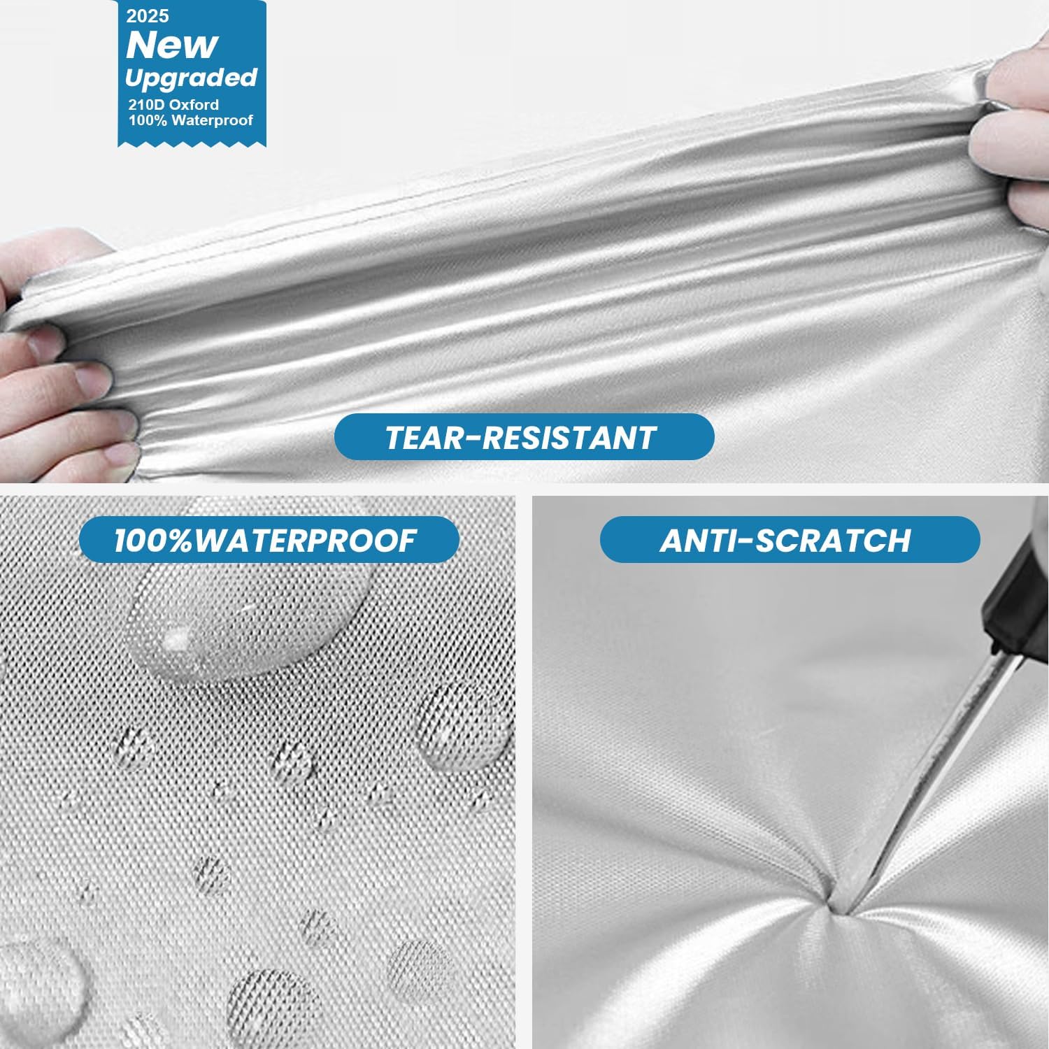 - Precision Custom Fit for Tesla Model Y (2020-2024): Exclusive 3D laser-cut tailoring ensures seamless integration with your Tesla Model Y’s aerodynamic contours (size: 189"L x 75"W x 64"H), providing full coverage. Reinforced stretchable seams and a weather-resistant elastic hem adapt to temperature changes, maintaining a secure, gap-free fit even in high winds.