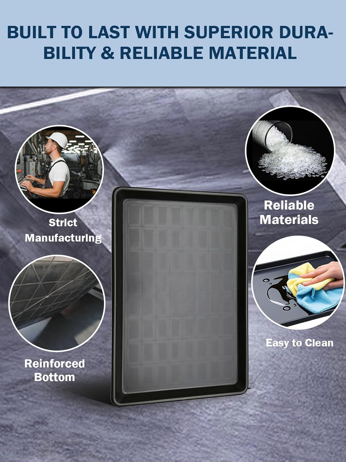 - 【Wide Range of Uses】Great value in multi-pack options. Stackable for compact storage when not in use. Suitable as an oil drip tray, snow blower drip catcher, engine leak tray, floor protector under appliances, mini fridge tray, litter box liner, or even for collecting condensation under HVAC units. Can also be used as a general-purpose utility tray.