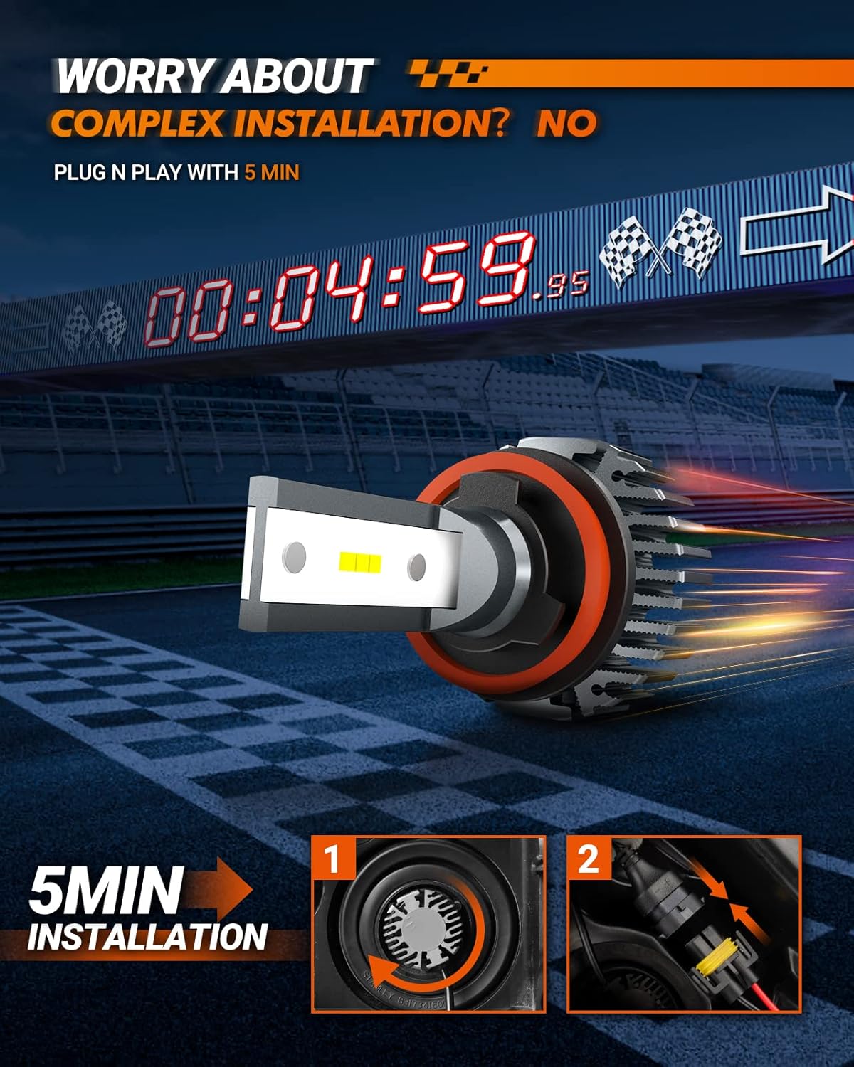 - 3 Mins Easy to Install: SEALIGHT S1 H11 9005 bulbs is perfect 1:1 design. Perfectly fit into your sockets without any modification. Installation can be finished in 3 minutes