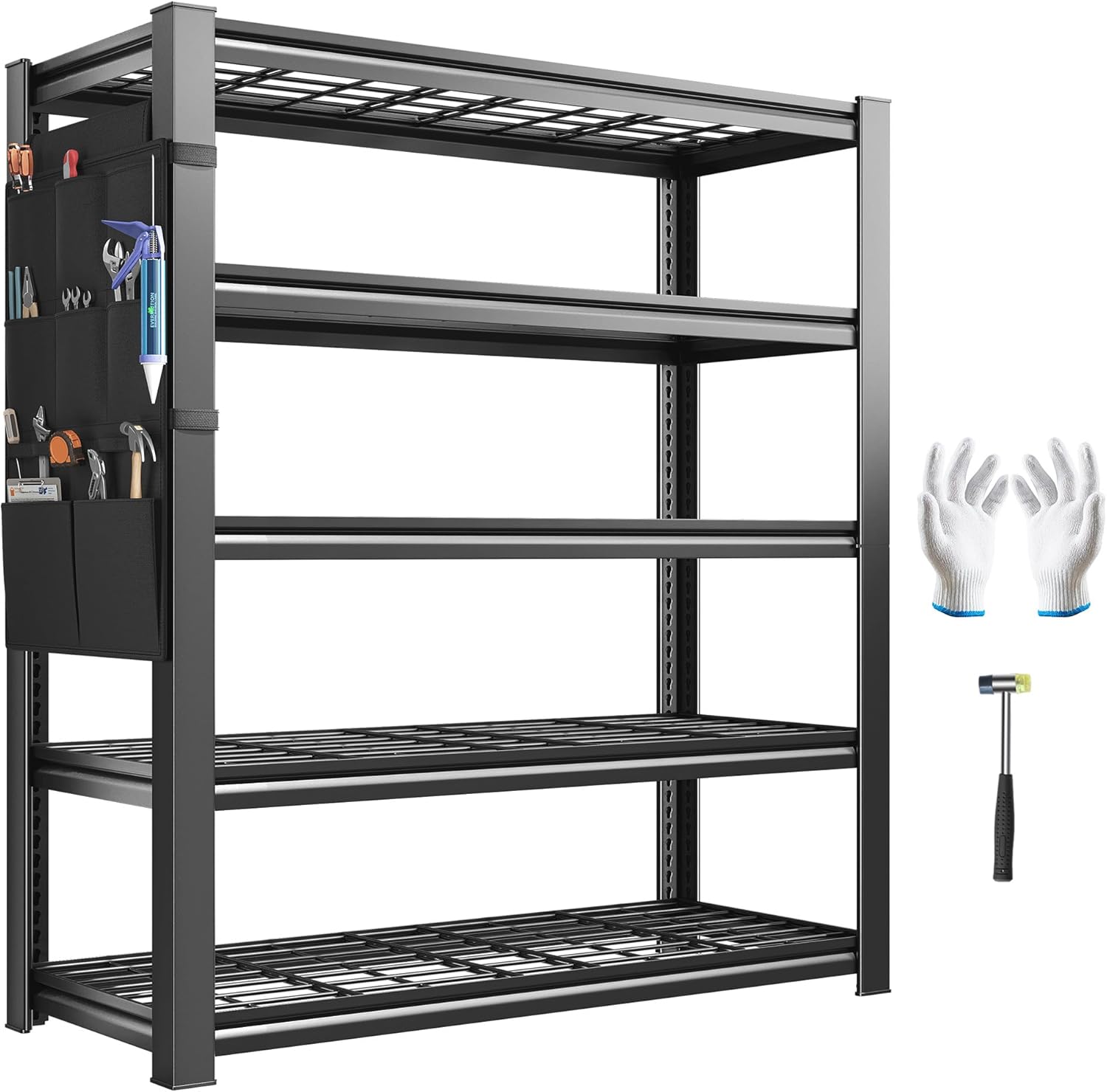 REIBII Storage Shelves, Heavy Duty Garage Shelving Load 2500LBS, 5-Tier Garage Shelves with Tool Storage Bag, Adjustable Industrial Metal Shelving for Basement, 66" H x38.2 W x16 D, Black