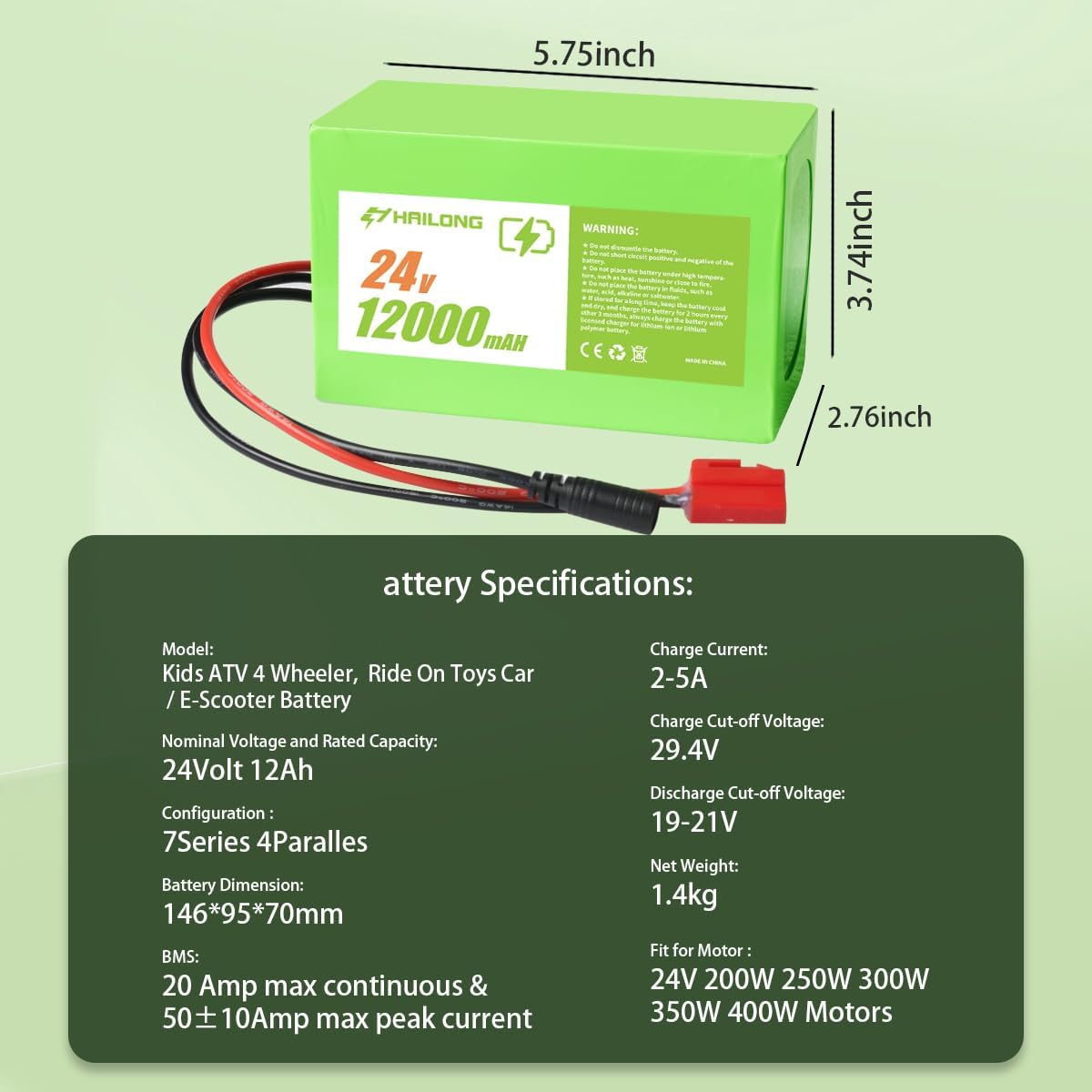 - **⚡️ Universal Compatibility** Perfect replacement for 24V ride-on toys, electric UTVs, and kids ATVs. Compatible with systems using 12FM7 battery 24V 12Ah 20hr specifications