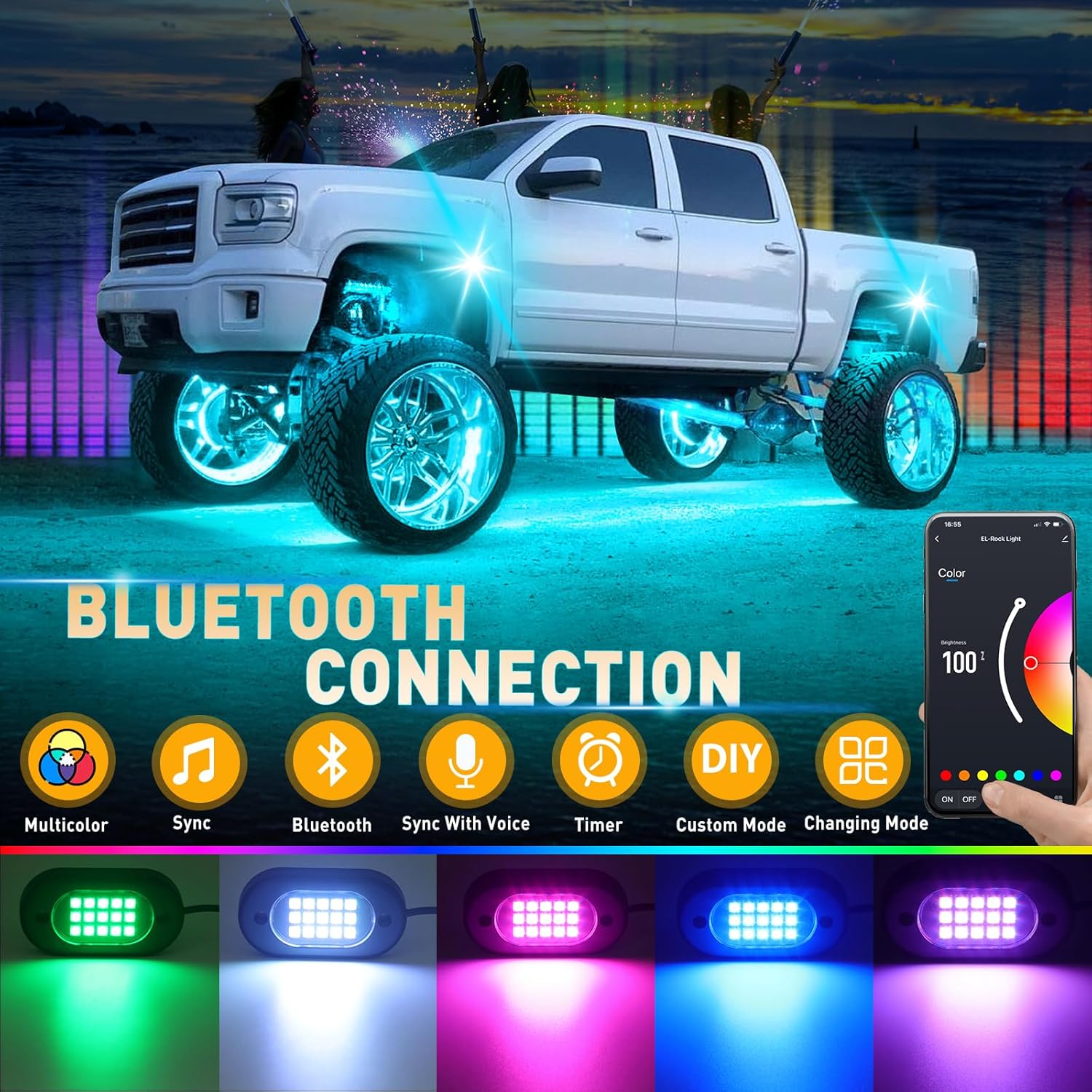 - â¶ăEnhance Your Vehicle's StyleăTransform your vehicle with our RGB rock lights for trucks and make it stand out from the crowd. Perfect for off-road enthusiasts or those looking to add a touch of excitement to their ride, these RGB rock lights will enhance your vehicle's style and create a captivating presence on and off the road