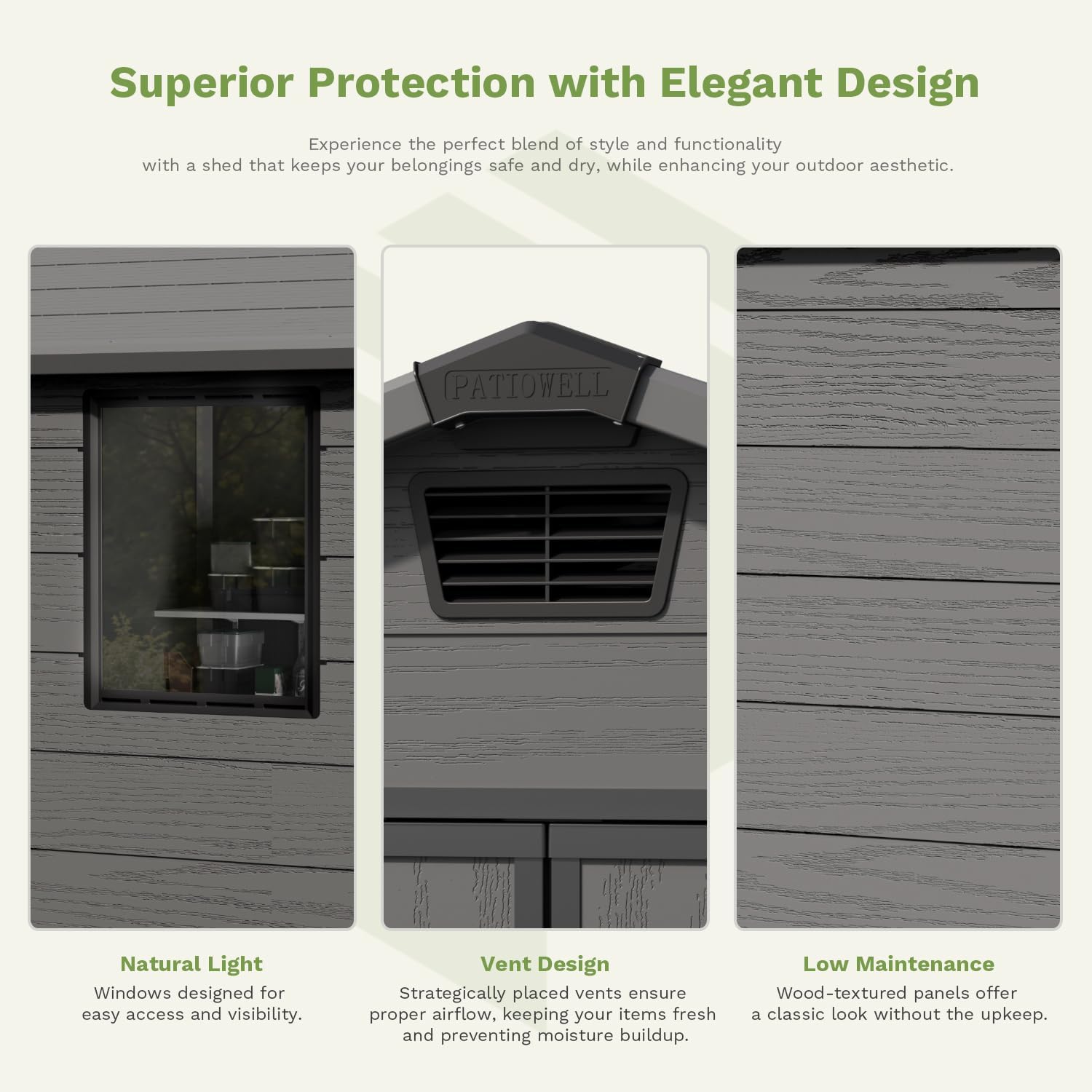 Patiowell 6 x 6 FT Plastic Outdoor Storage Shed with Floor, Resin Outside Tool Shed with Two Windows and Lockable Door for Garden, Backyard, Tool Storage Use, Easy to Install, Dark Grey