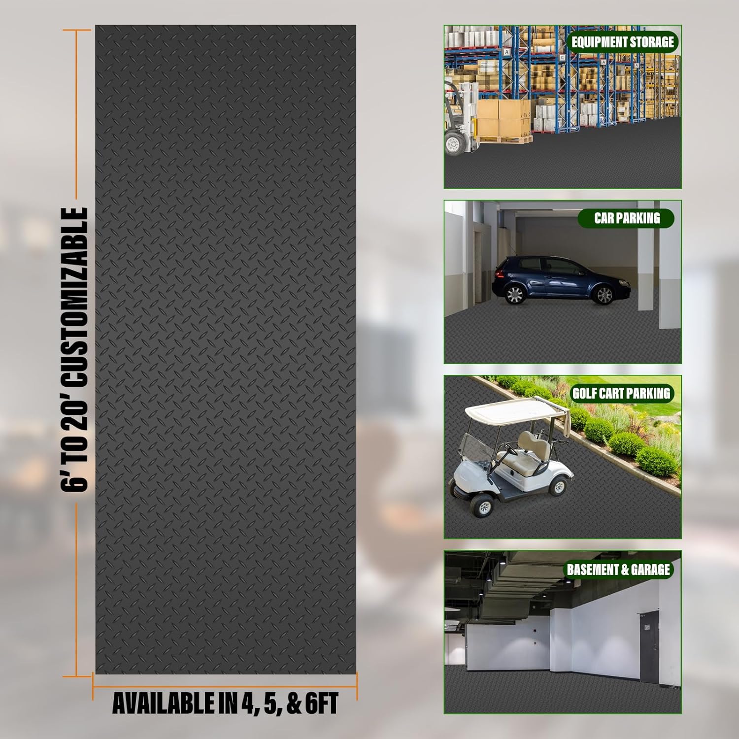 SEAL 5 x 15 Ft Premium Garage Floor Mat, Solid 2.8mm Thickened Black Commercial Grade Heavy Duty Parking Mat for Garage Floor, Golf Cart, Water/Stain Resistant Floor Runner (Embossed Diamond Plate)