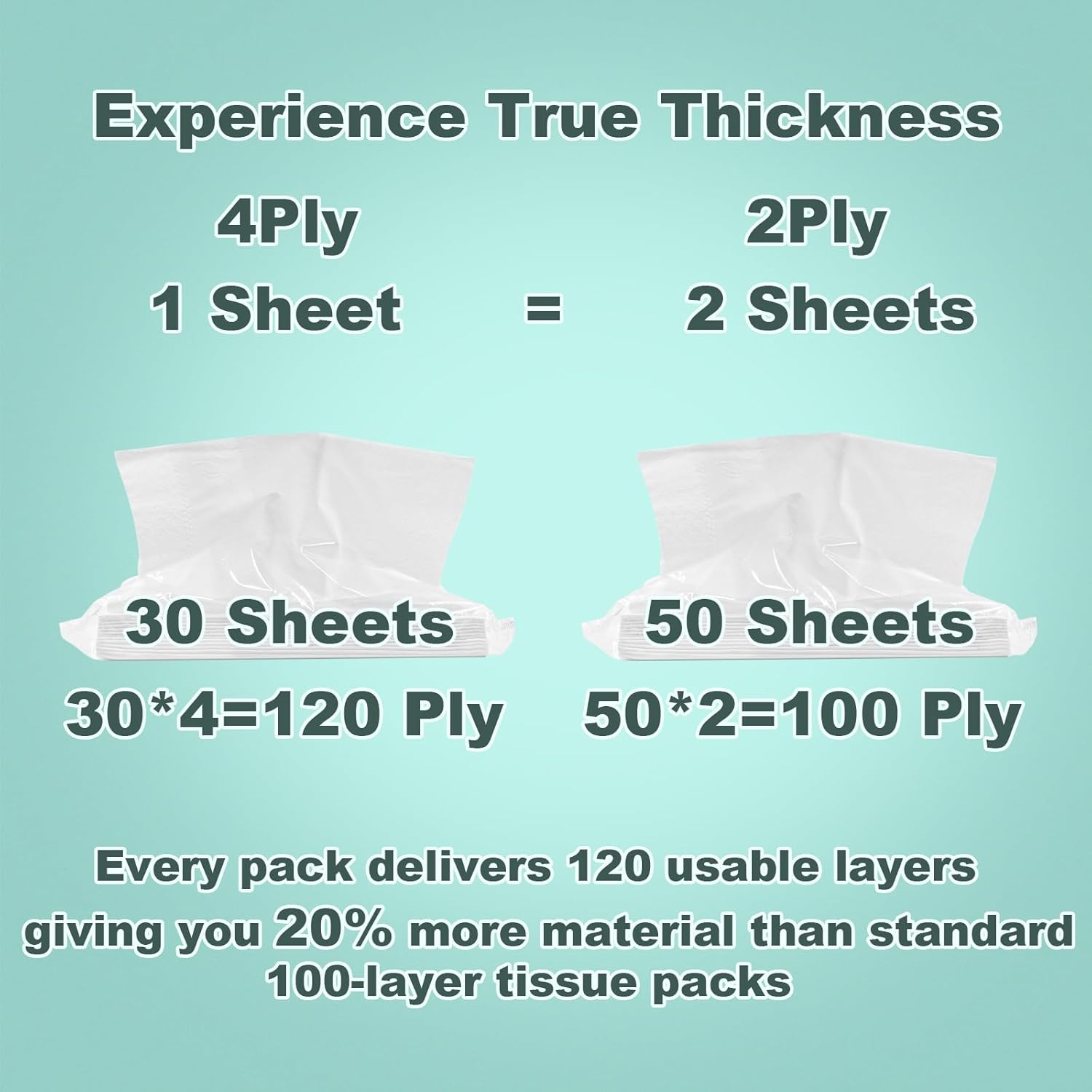 4-Ply Car Tissue Refills (1920 Layers) - 16 Pack Travel Size Tissues, Soft & Strong Disposable Facial Tissues for Car, Office, Home - 480 Sheets