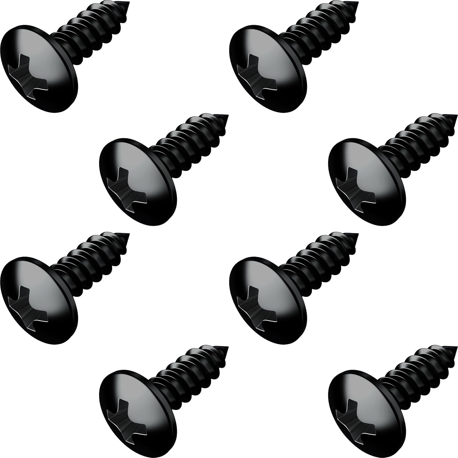 - 8 Screws for Total Plate Security: This set includes 8 heavy-duty black oxide stainless license plate screws, providing everything you need to securely mount both front and rear license plates. Compatible with most frames and holders of most vehicles, our rust proof license plate screws are the all-in- one solution for a rattle-free, reliable fit.