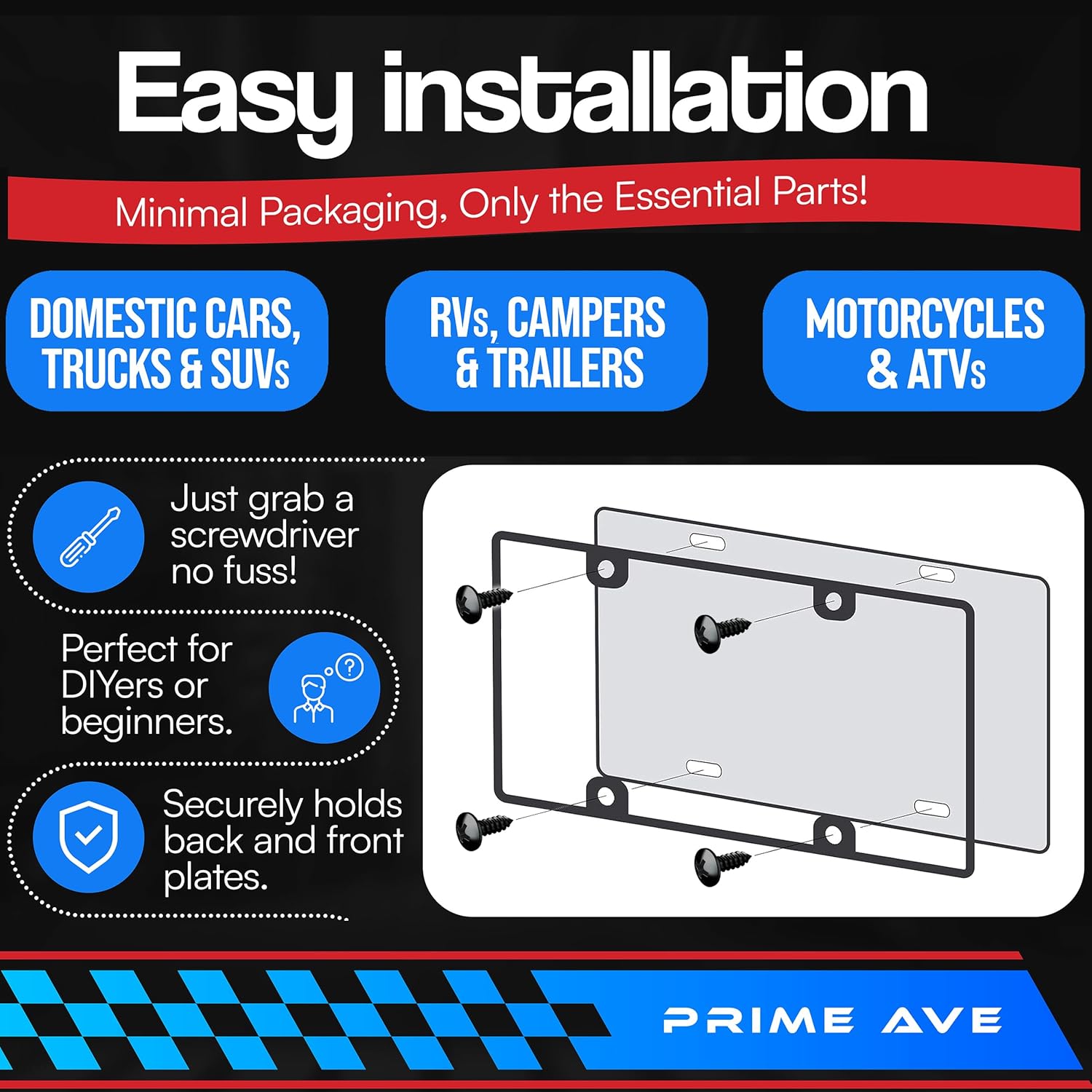 - Hassle-Free DIY Installation: No need for fancy tools or professional help — our standard-size car tag screws make installation quick and simple. simply grab a screwdriver, and you're good to go! Whether you're securing front or rear plates, our license frame fastener with truss head have a wide, slightly domed head with a low profile, making them ideal plate screw for distributing pressure and providing a clean finish look.