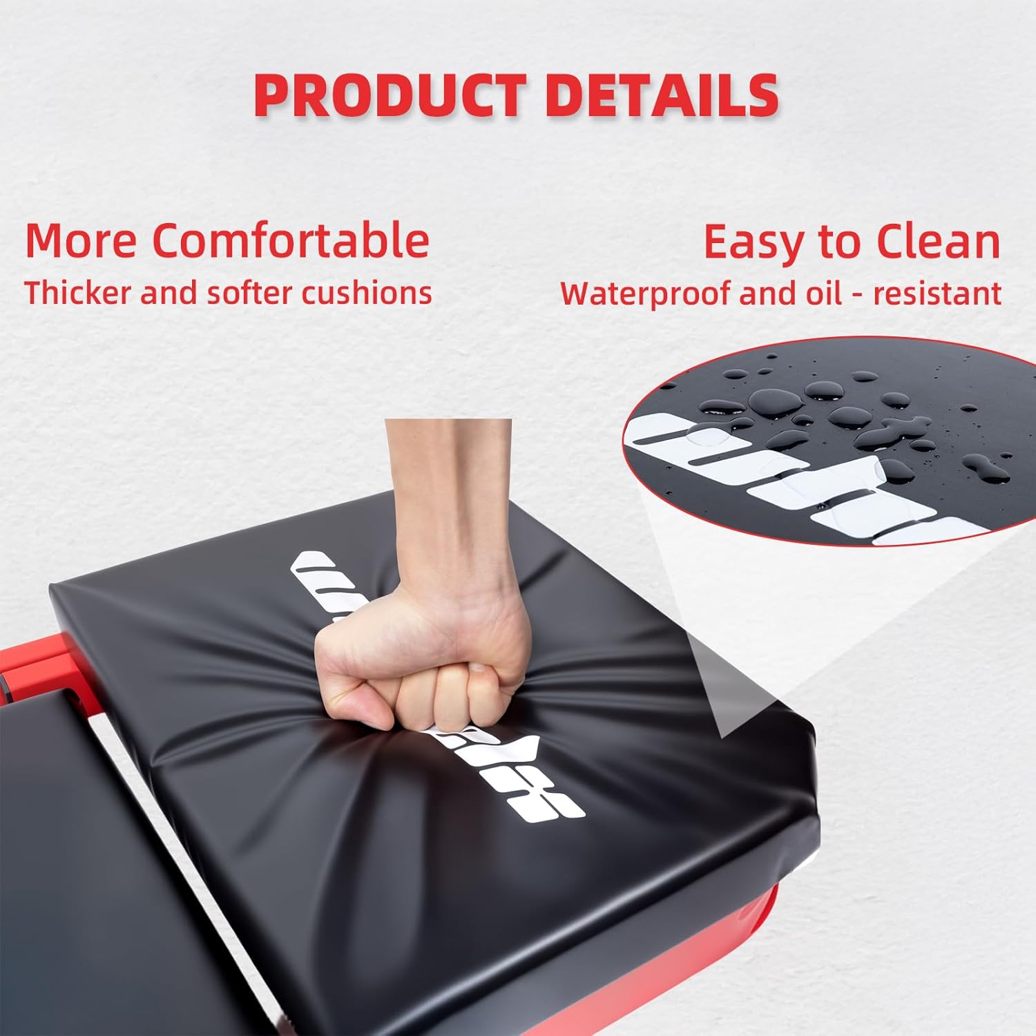 Mechanic Creeper 40inches 3-in-1 Z Seat 480lbs Capacity, Foldable Garage Chair Adjustable Rolling Folding with 6pcs Wheels Roller, Lay Down Sit Lean Back, Under Car Shop Auto Repair Man Gift