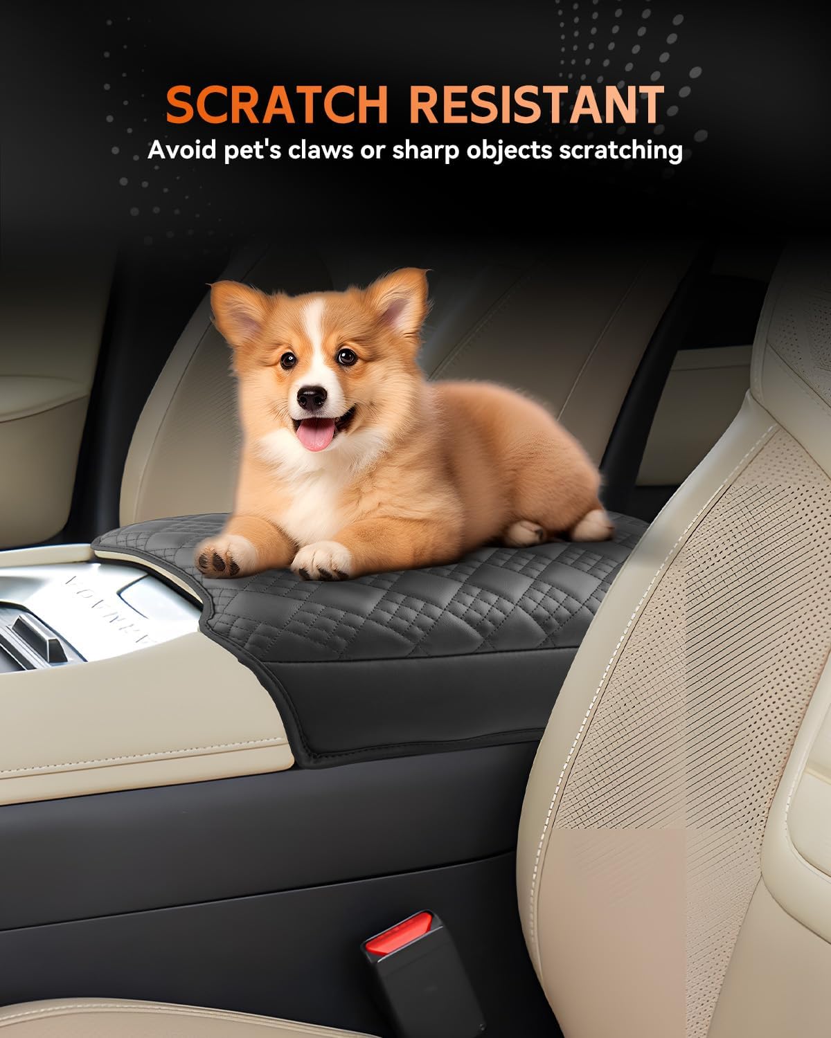 - [Excellent Scratch Resistance] The car Armrest Cover mat is made of high quality PU microfiber leather, thick enough to keep out pet paws, dust and sticky fingers. The surface is waterproof, wear-resistant and durable, breathable, light weight and easy to wipe clean of dirt.