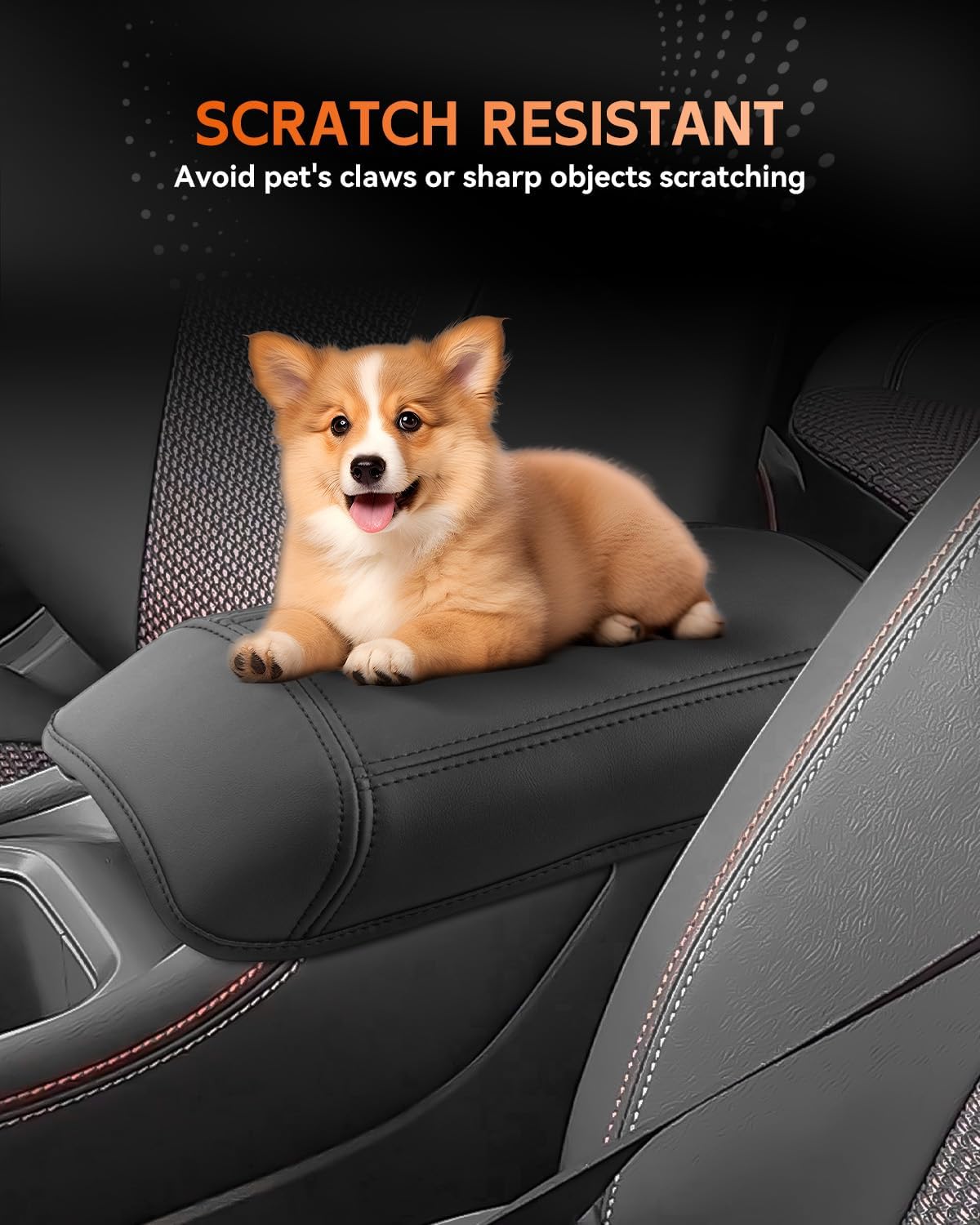 - [Excellent Scratch Resistance] The car Armrest Cover mat is made of high quality PU microfiber leather, thick enough to keep out pet paws, dust and sticky fingers. The surface is waterproof, wear-resistant and durable, breathable, light weight and easy to wipe clean of dirt.