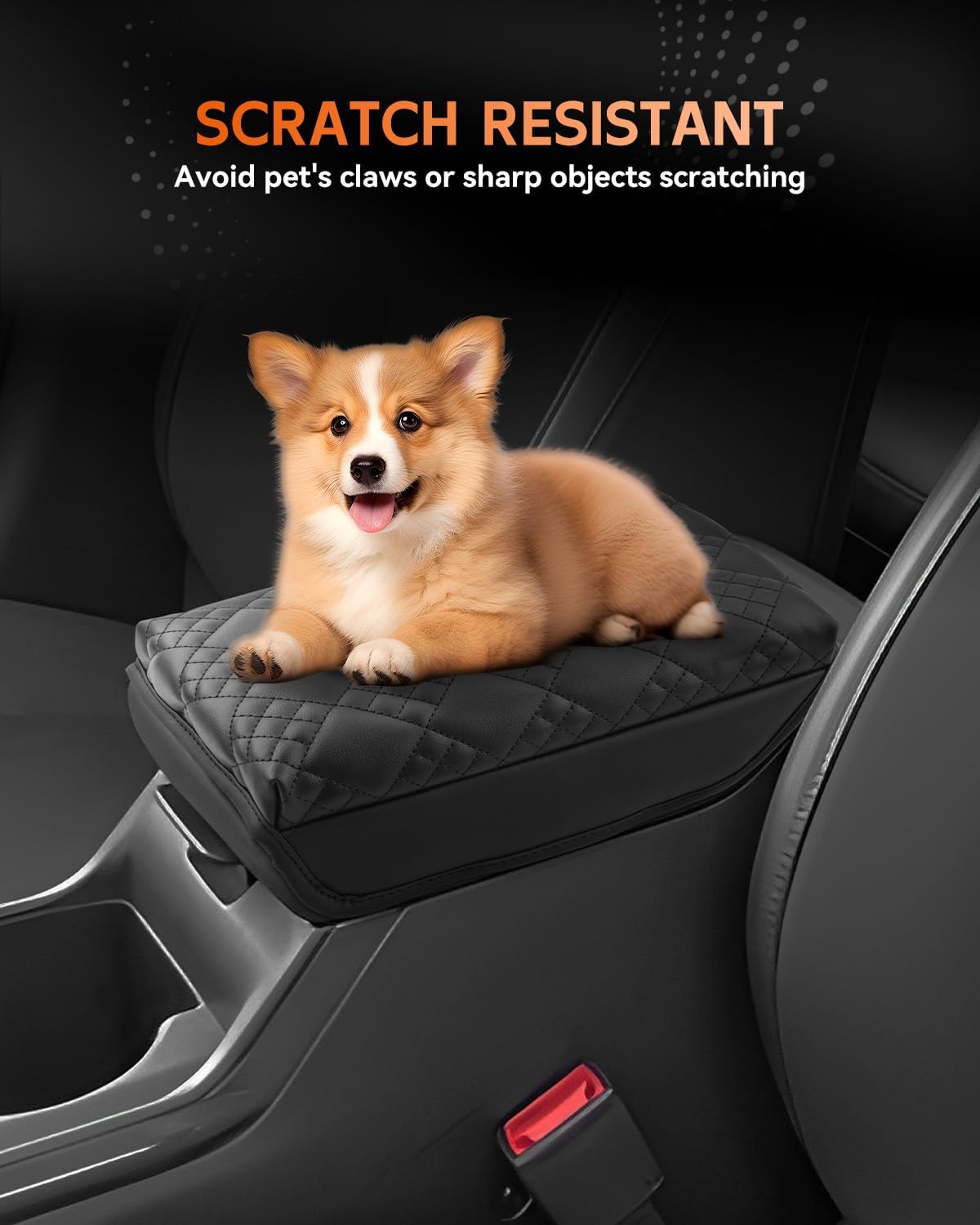 - [Excellent Scratch Resistance] The car Armrest Cover mat is made of high quality PU microfiber leather, thick enough to keep out pet paws, dust and sticky fingers. The surface is waterproof, wear-resistant and durable, breathable, light weight and easy to wipe clean of dirt.