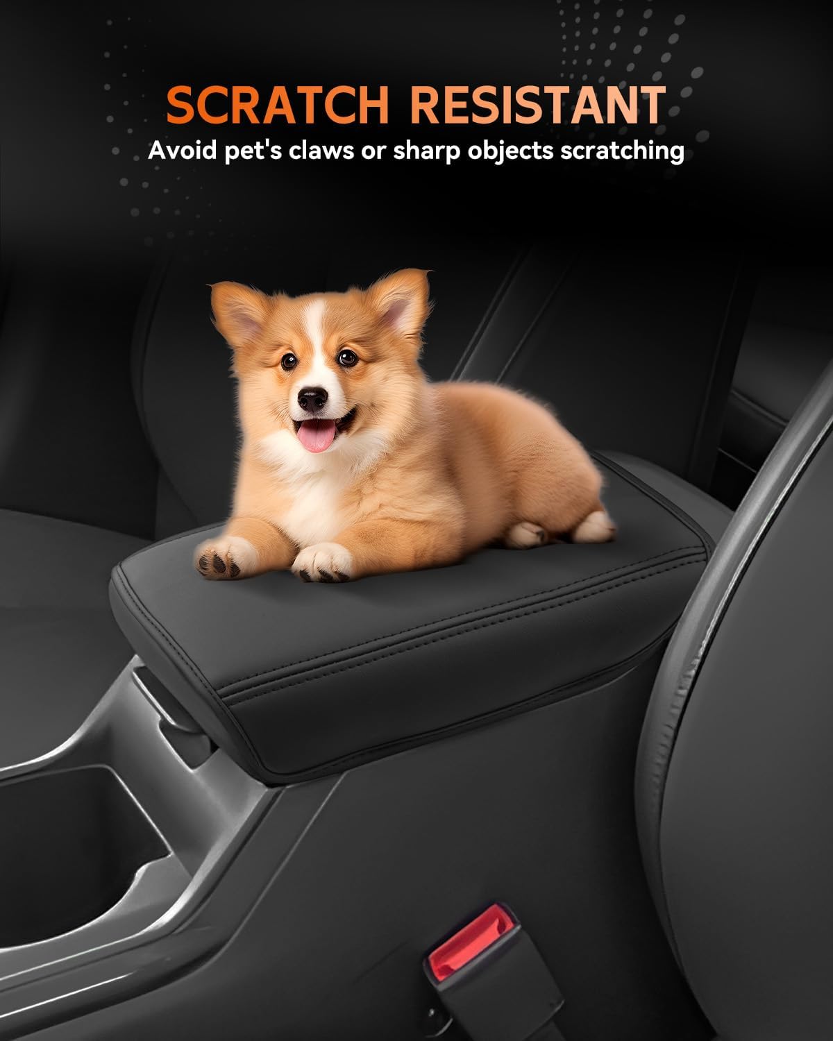 - [Excellent Scratch Resistance] The car Armrest Cover mat is made of high quality PU microfiber leather, thick enough to keep out pet paws, dust and sticky fingers. The surface is waterproof, wear-resistant and durable, breathable, light weight and easy to wipe clean of dirt.