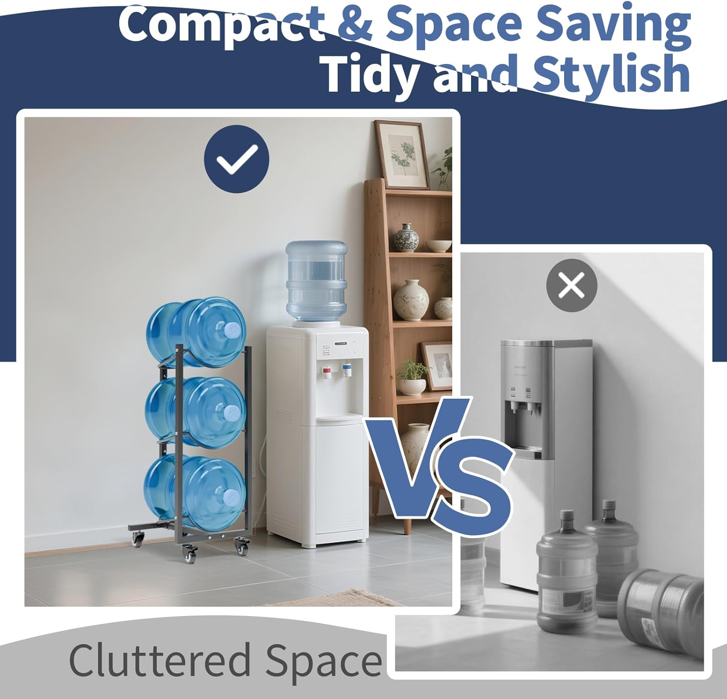 - Save Space: The 4-tier water jug rack is designed to store multiple jugs in a compact footprint, maximizing space efficiency. Its organized design keeps your space tidy and stylish, enhancing aesthetics while reducing clutter.