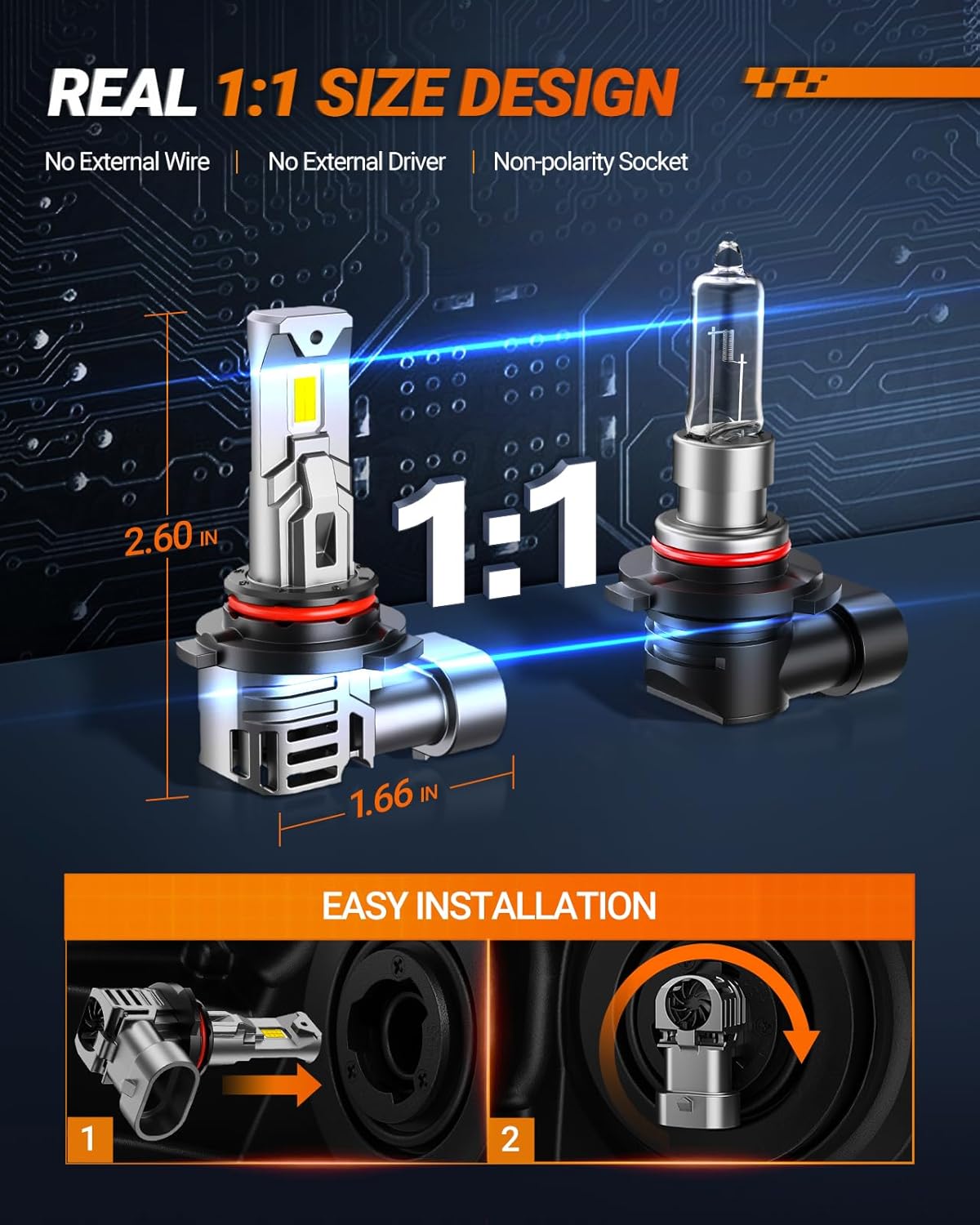 - 【1:1 Size & Easy Installation】Sealight 9005 H11 Fog Light bulbs feature a near-identical 1:1 mini design as original bulbs, requiring no external drivers or wires for a true plug-and-play experience