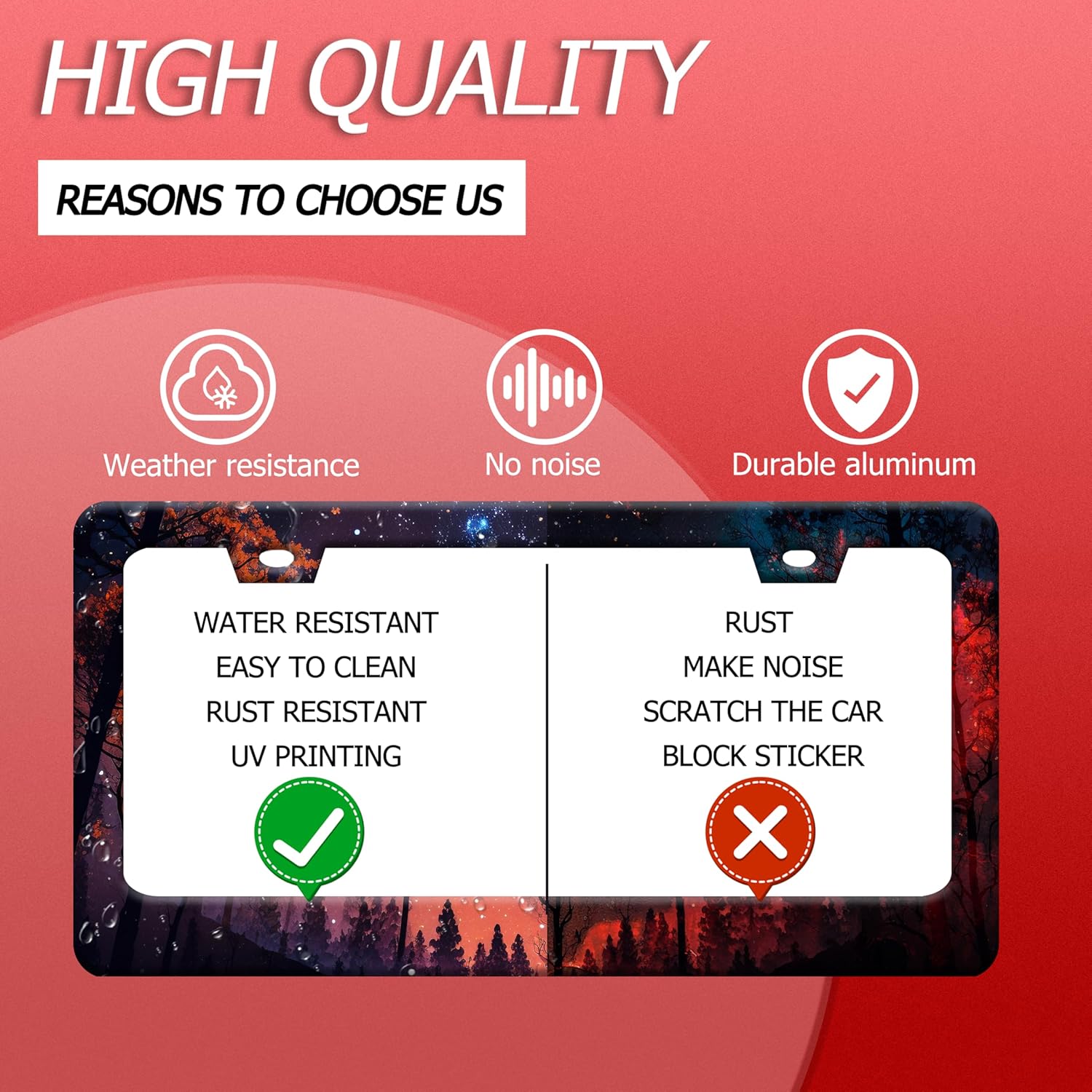 Night Starry Forest License Plate Frame Beautiful Night License Plate Holder Funny Stainless Steel Accessories Cars Decor with 2 Holes and Screws Fits Standard Us Ca Vehicles 12.2 X 6 Inch