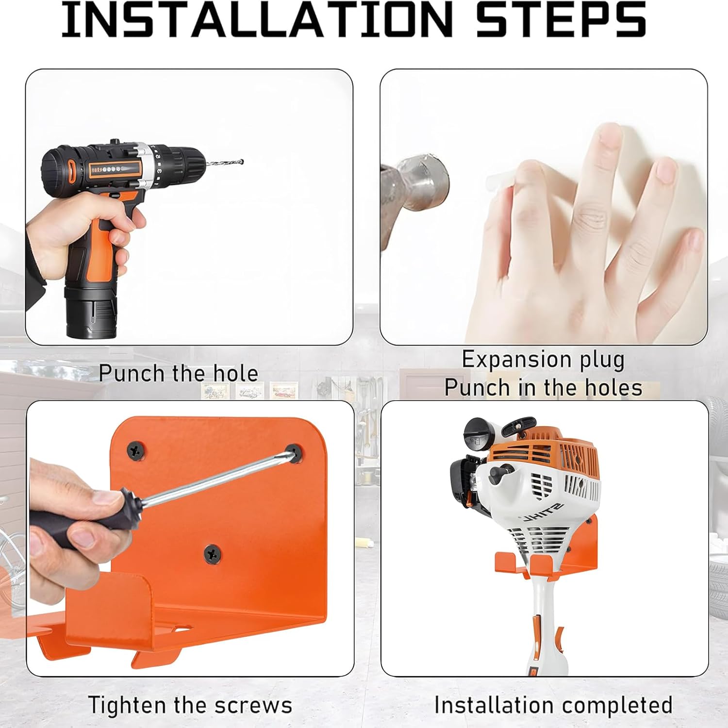 - 【Sturdy & Premium Materials】The weed eater hanger is made of thickened stainless steel, which is stronger and has high bearing capacity. The surface of the racks is sprayed with black paint for double protection. Waterproof and anti-rust, wearproof, resistance to chipping and cracking. Smooth edge cutting does not hurt your hands and tools. Its robust design ensures that your power tools are held securely in place, preventing accidental damage or falls!