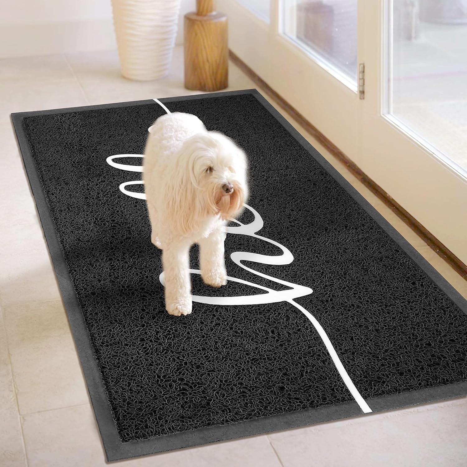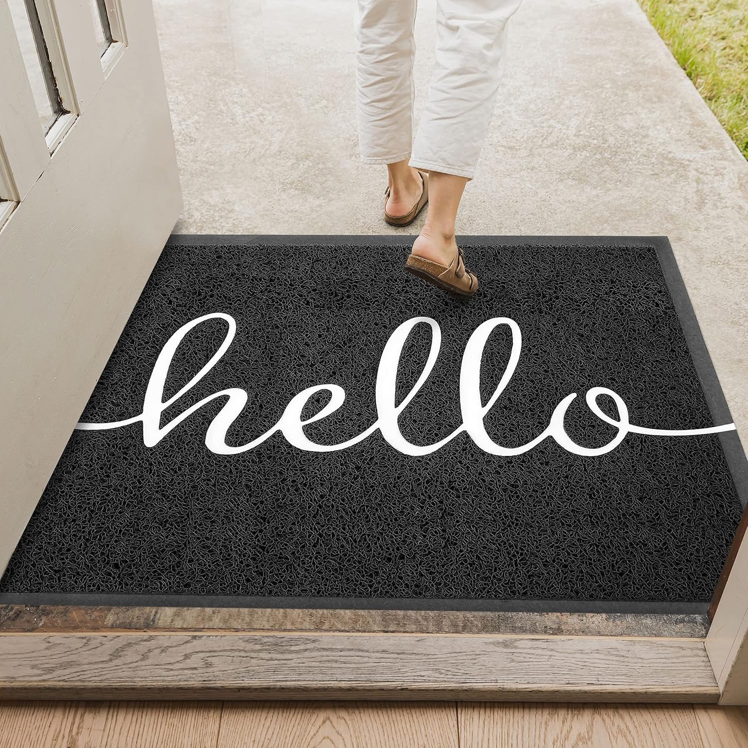 - NOTE: Made from soft, non-absorbent PVC silk loops, this mat effectively traps dirt but doesn’t absorb water. For outdoor use, please lift to drain after rain. Don’t worry—Temporary creases from folded packaging will flatten within days when laid flat