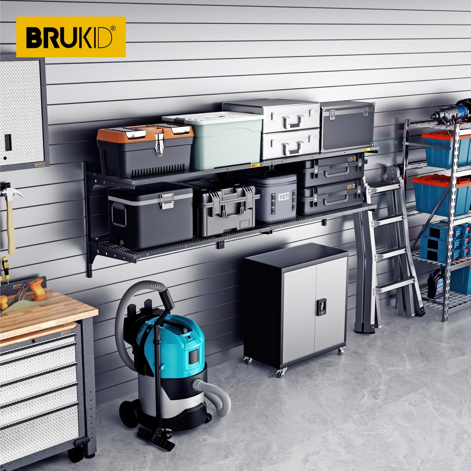 - Flexible & Adaptable Design: Featuring innovative sliding rail screws, Brukid's adjustable shelves can be installed on studs spaced anywhere within the 36-inch panel length. This design eliminates compatibility issues with uneven stud spacing, providing a hassle-free installation experience for any project.
