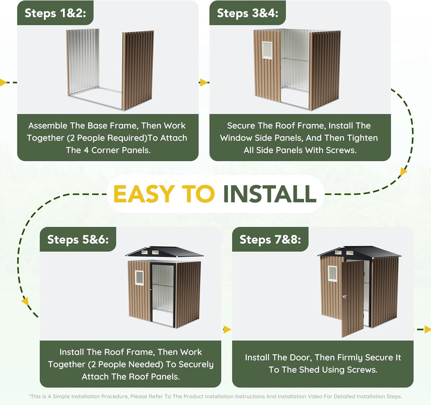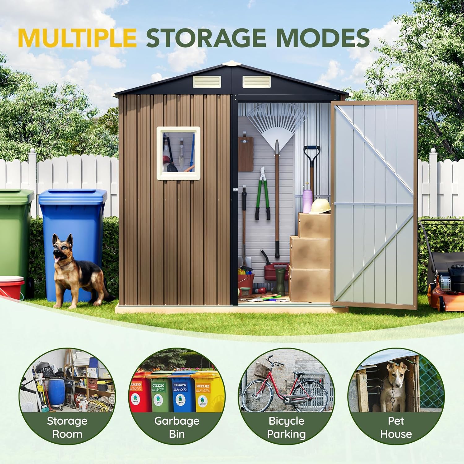 Breezz 6x4FT Outdoor Steel Storage Shed, Lockable Doors, Compact Metal Tool Shed for Garden, Backyard, Patio, Utility, and Bike Storage,Brown