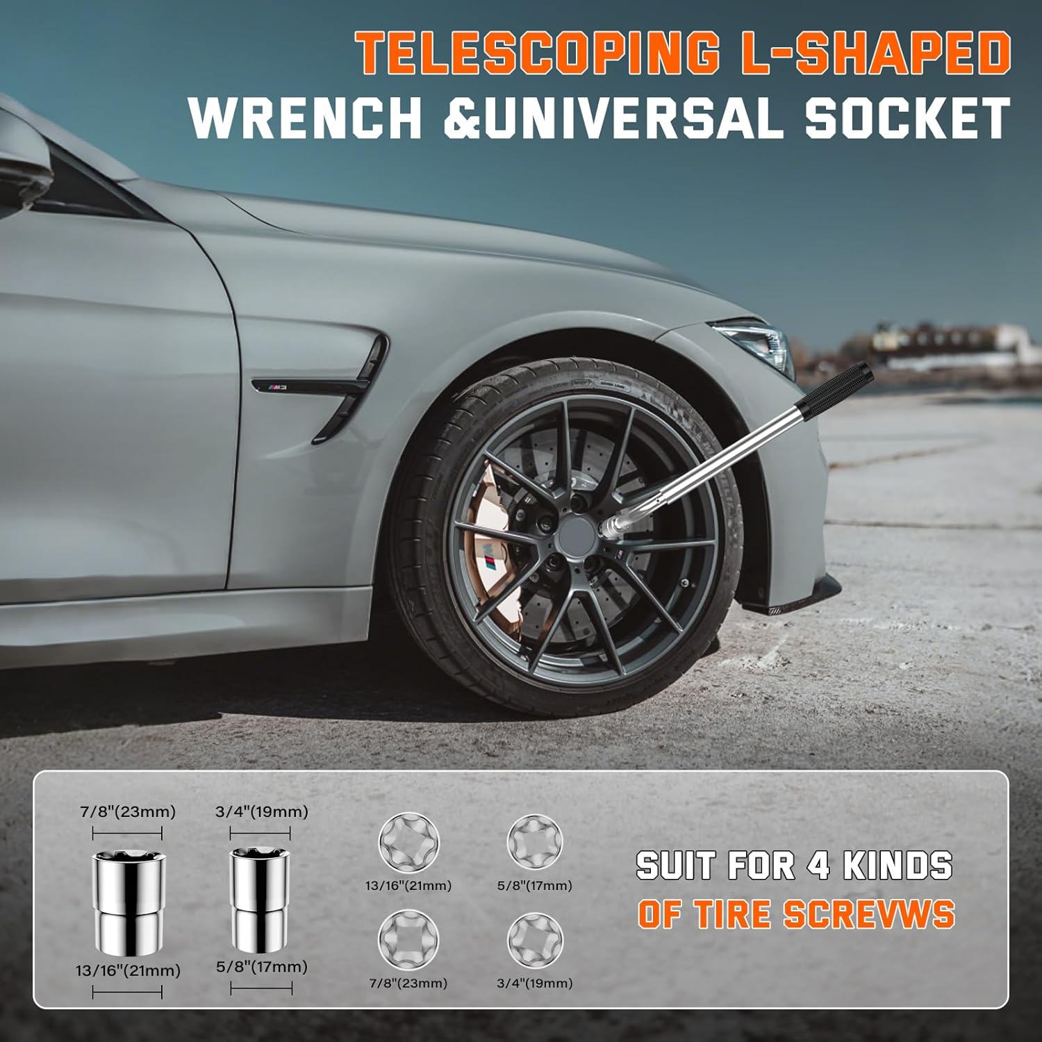 - 【Universal Car Tire Kit】This car jack set is universally compatible with Sedans, SUVs, MPVs, and other vehicles. It is perfect for emergency situations where you need to change a flat tire, remove a stuck wheel, or perform other vehicle repairs.