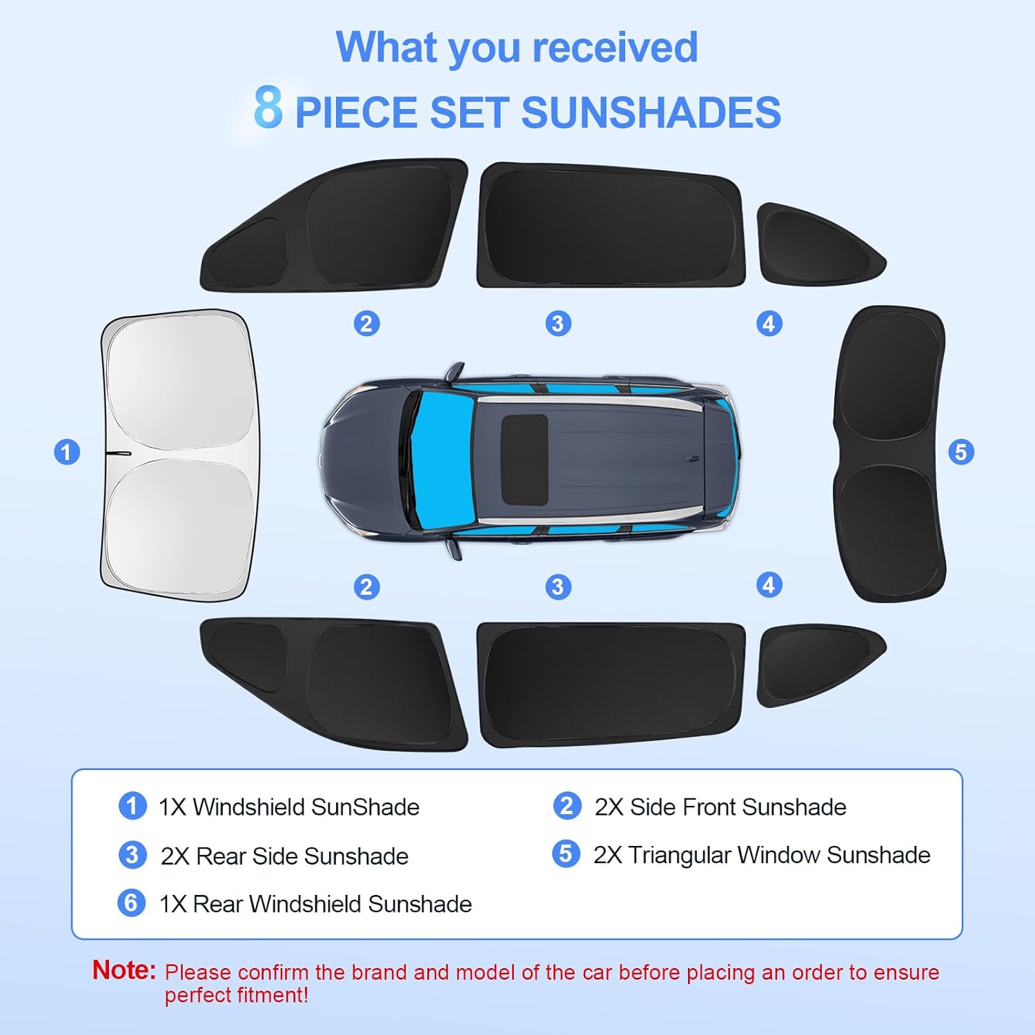 8pcs Car Window Shades for Toyota Highlander 2020-2025 Accessories,Windshield Side Rear Full Sunshade,Sun Visor UV Blocking, Privacy Protection and Blackout for Camping Outdoor