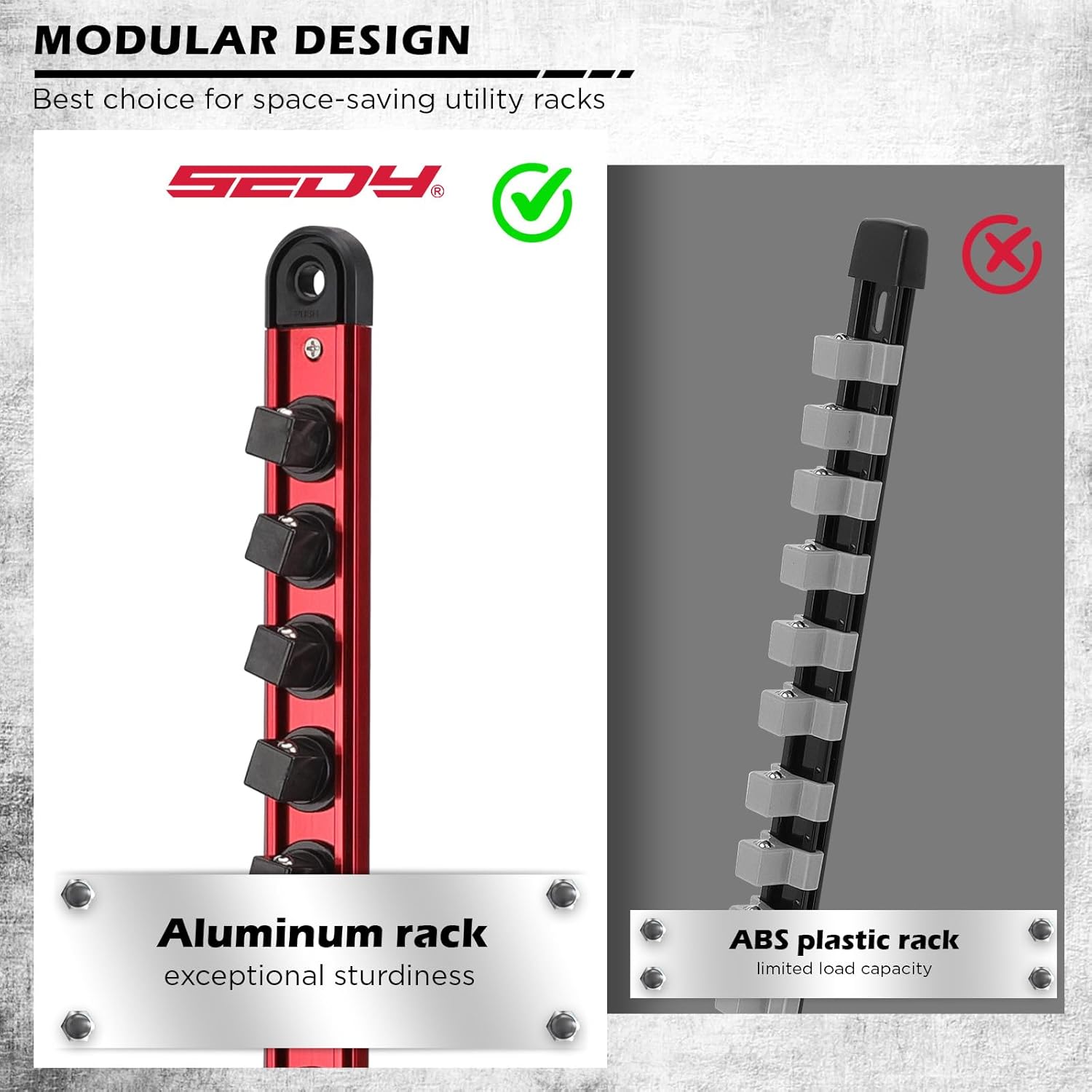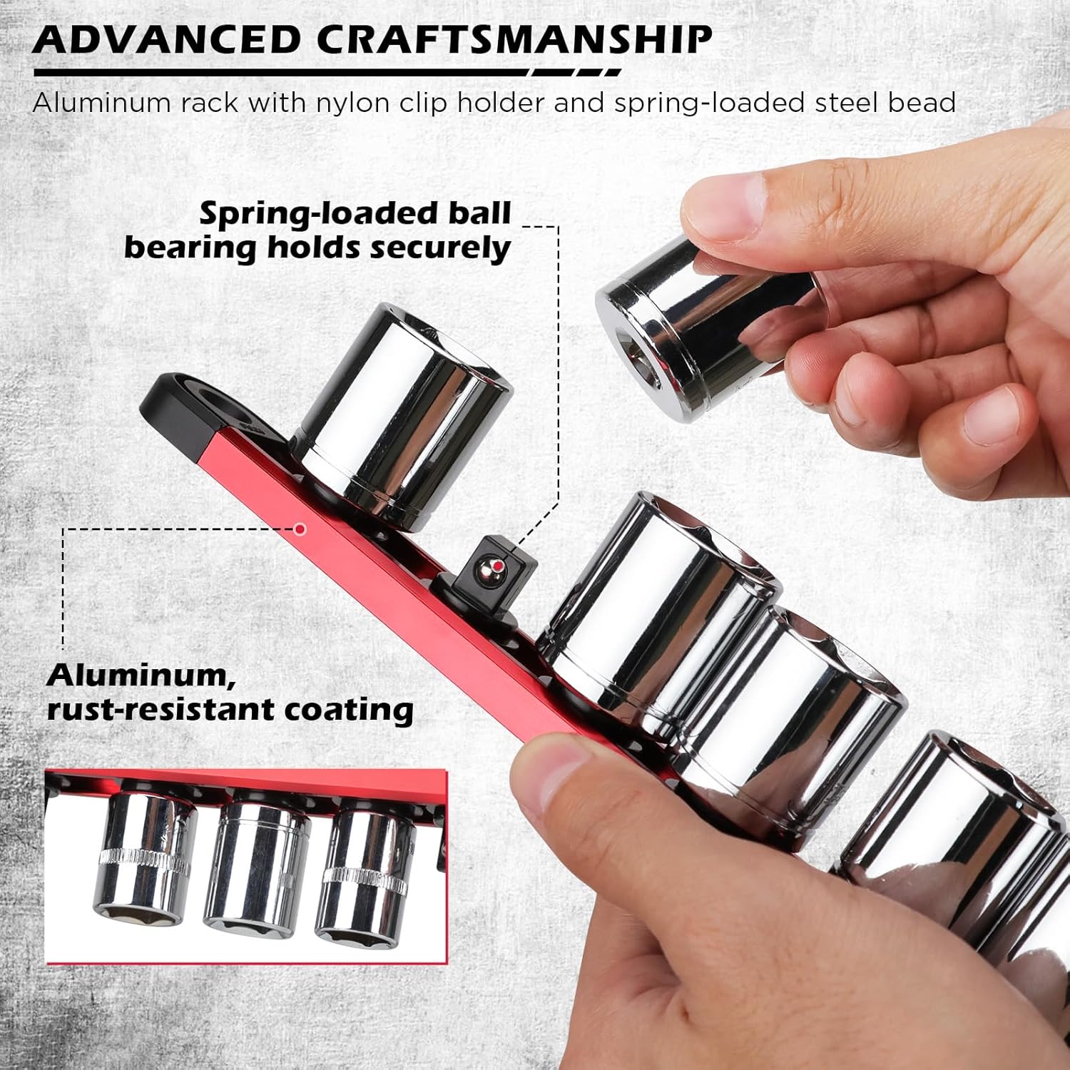 - DURABLE CONSTRUCTION - Built from premium aluminum and ABS, this heavy duty magnetic socket holder organizer set withstands daily use, resists corrosion, secures sockets in your toolbox or drawer and keeps your garage tidy