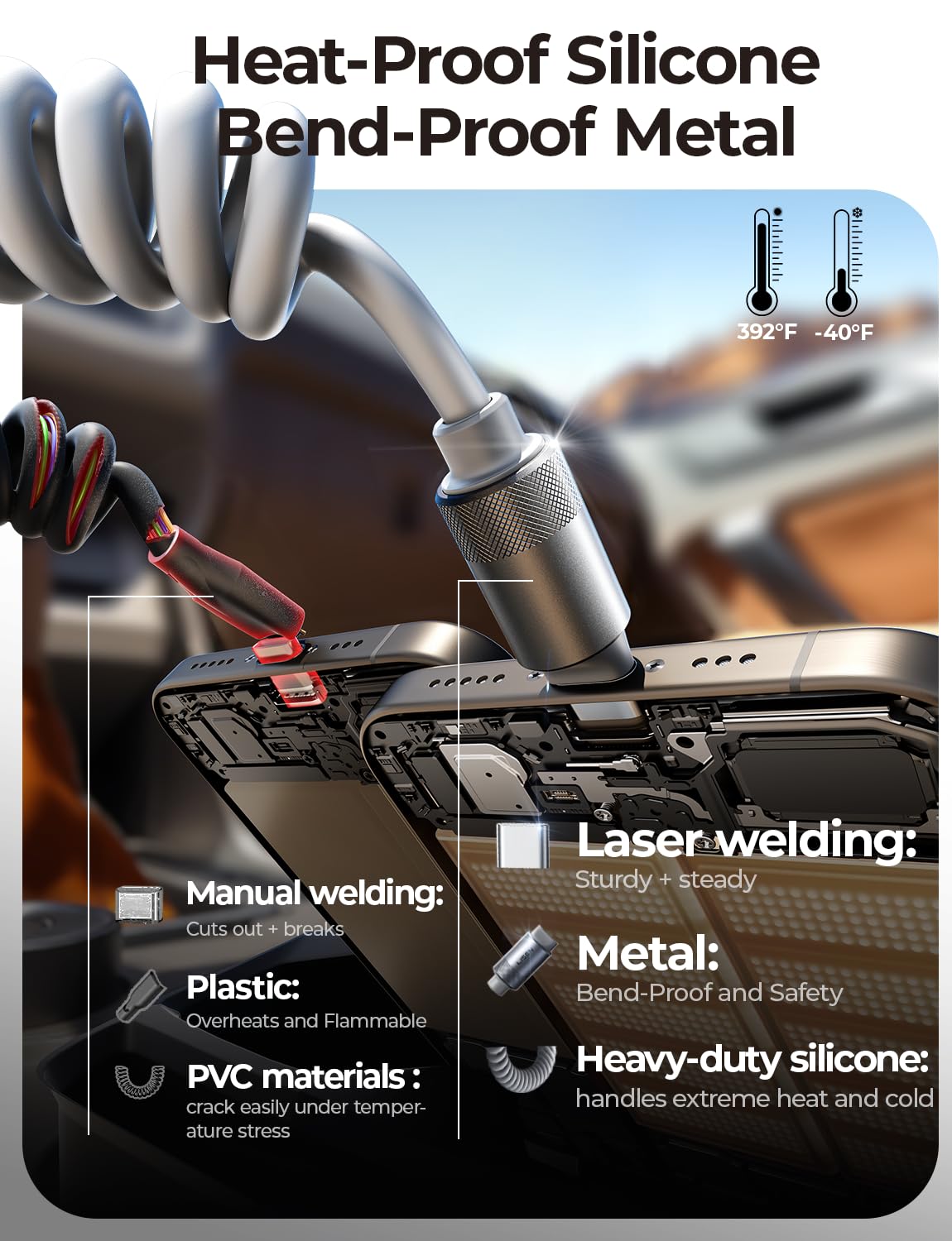 - 【Optimized for CarPlay & Android Auto】LISEN coiled cable features an upgraded internal structure with double reinforcement. UV adhesive sealing and molded unibody construction prevent disconnections even on bumpy roads. Supports 480Mbps data transfer speed for media and picture files. Power your phone and enjoy seamless navigation & music via rock-solid CarPlay & Android Auto, mile after mile