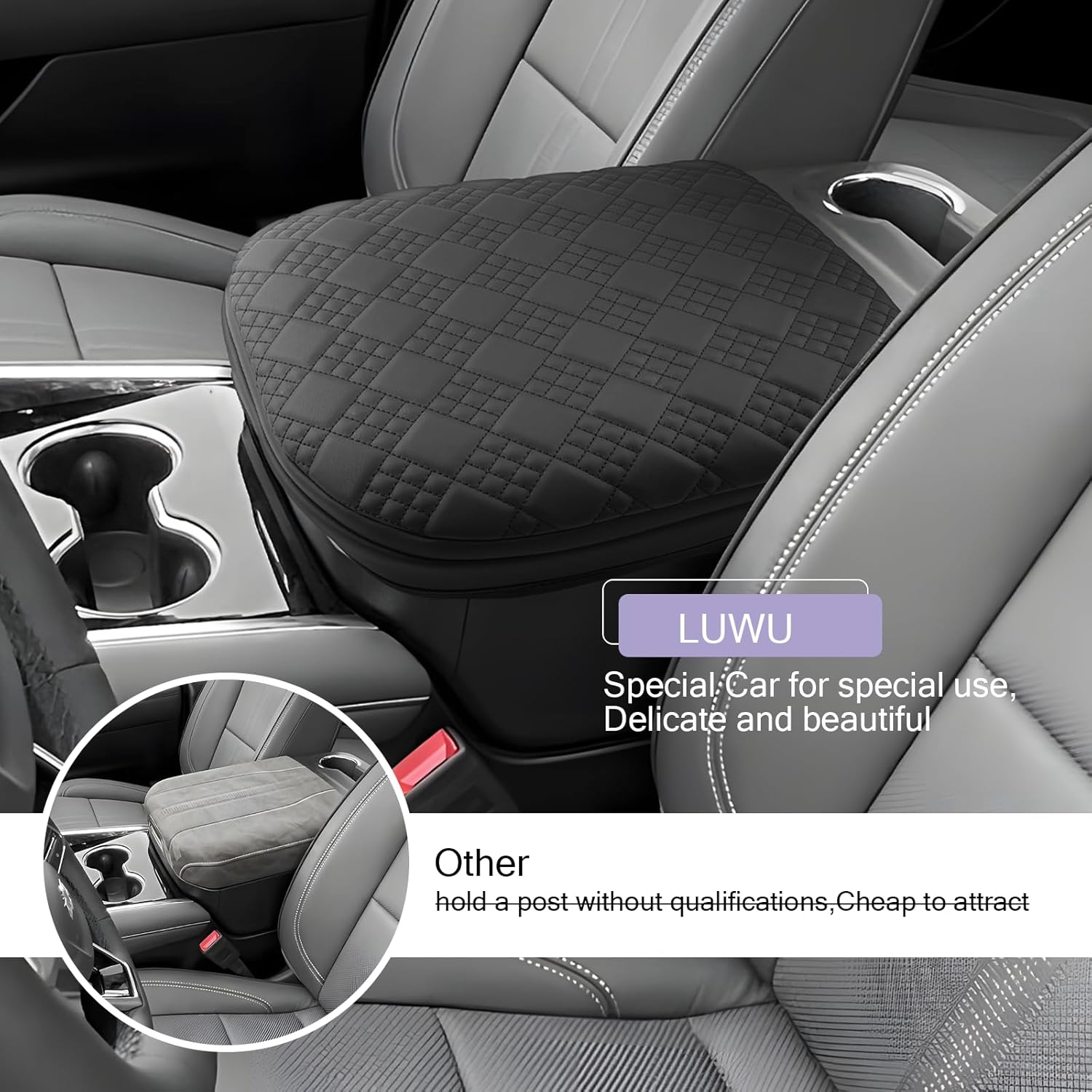 LUWU 2025 Suburban Tahoe Center Console Cover Compatible with 2025 Chevrolet Suburban Tahoe Accessories 2025 Chevy Suburban Tahoe Armrest Cover Armrest Console Cover (Thick Black)