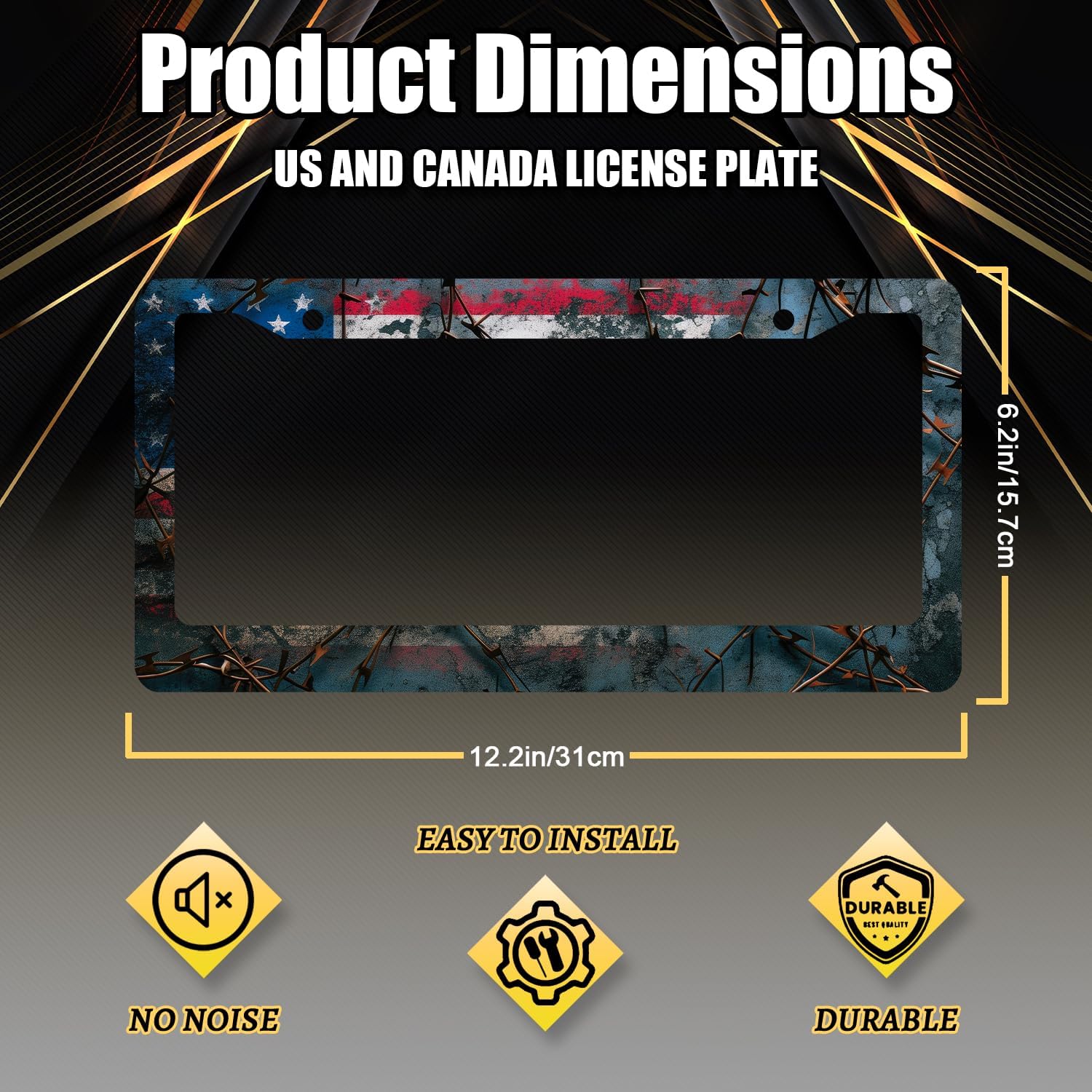 American Flag License Plate Frame Patriotic USA License Plate Holder Stainless Steel Funny Design with 2 Holes and Screws 12.3" x 6.3"