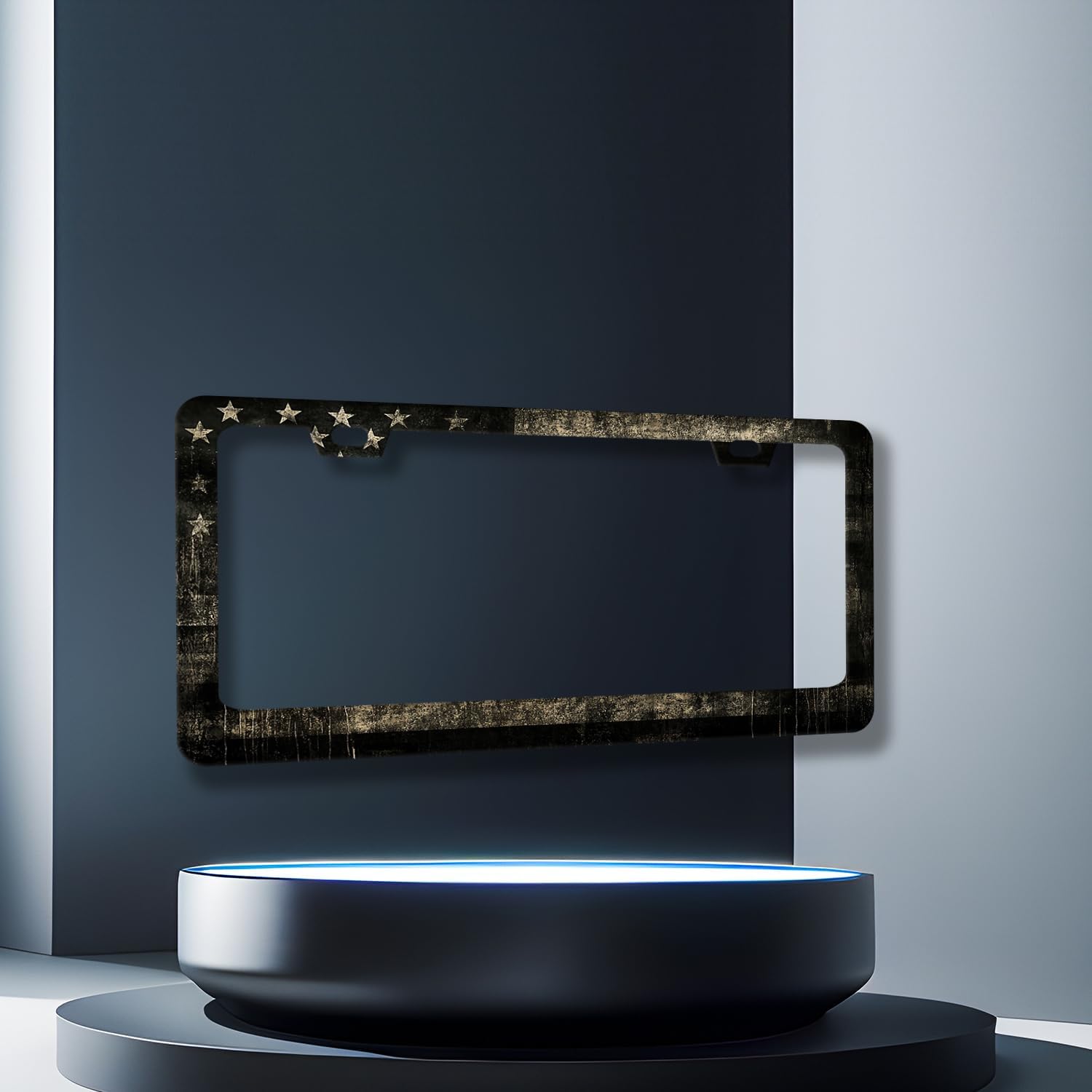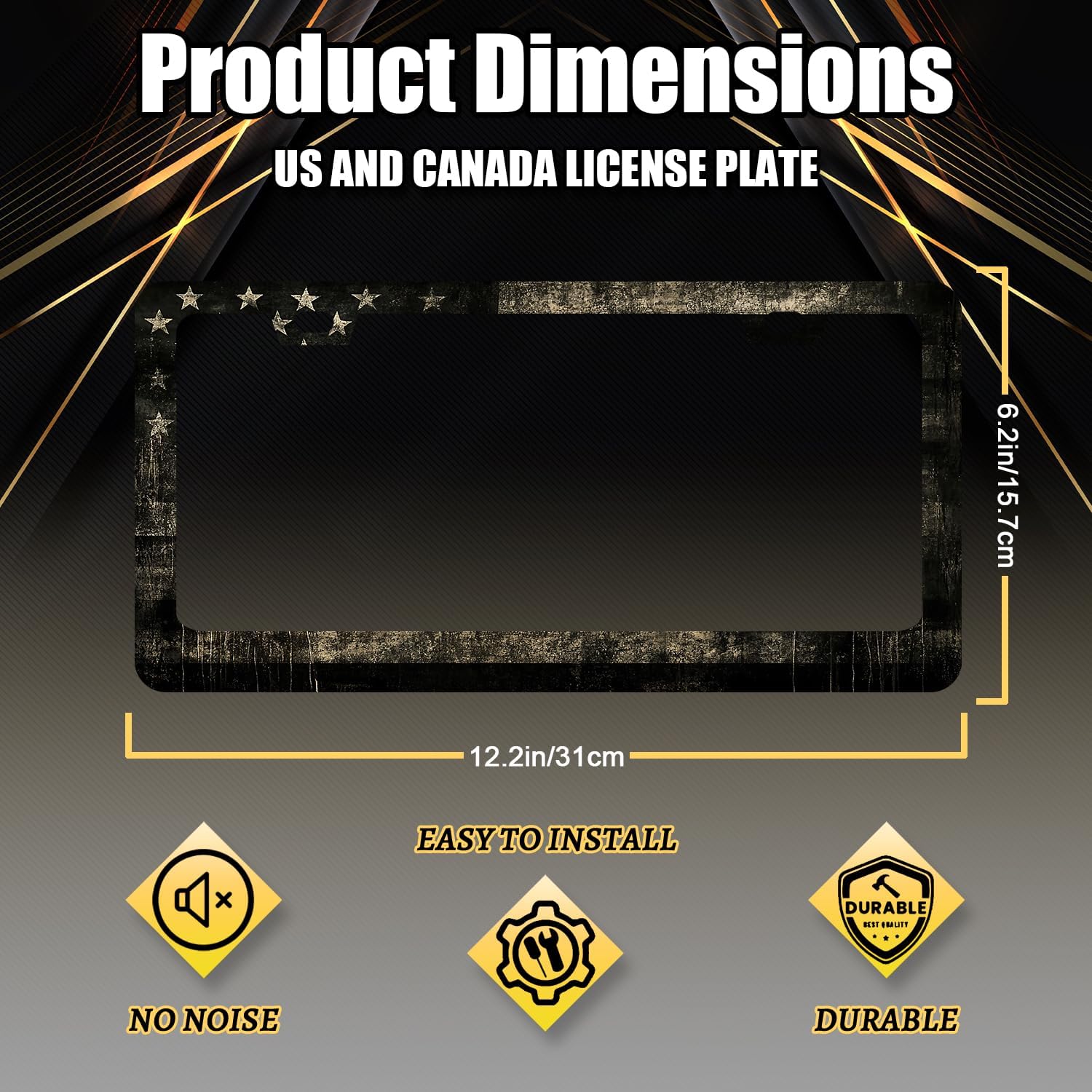 Vintage American Flag License Plate Frame USA Flag License Plate Holder Stainless Steel Funny Design with 2 Holes and Screws 12.3" x 6.3"