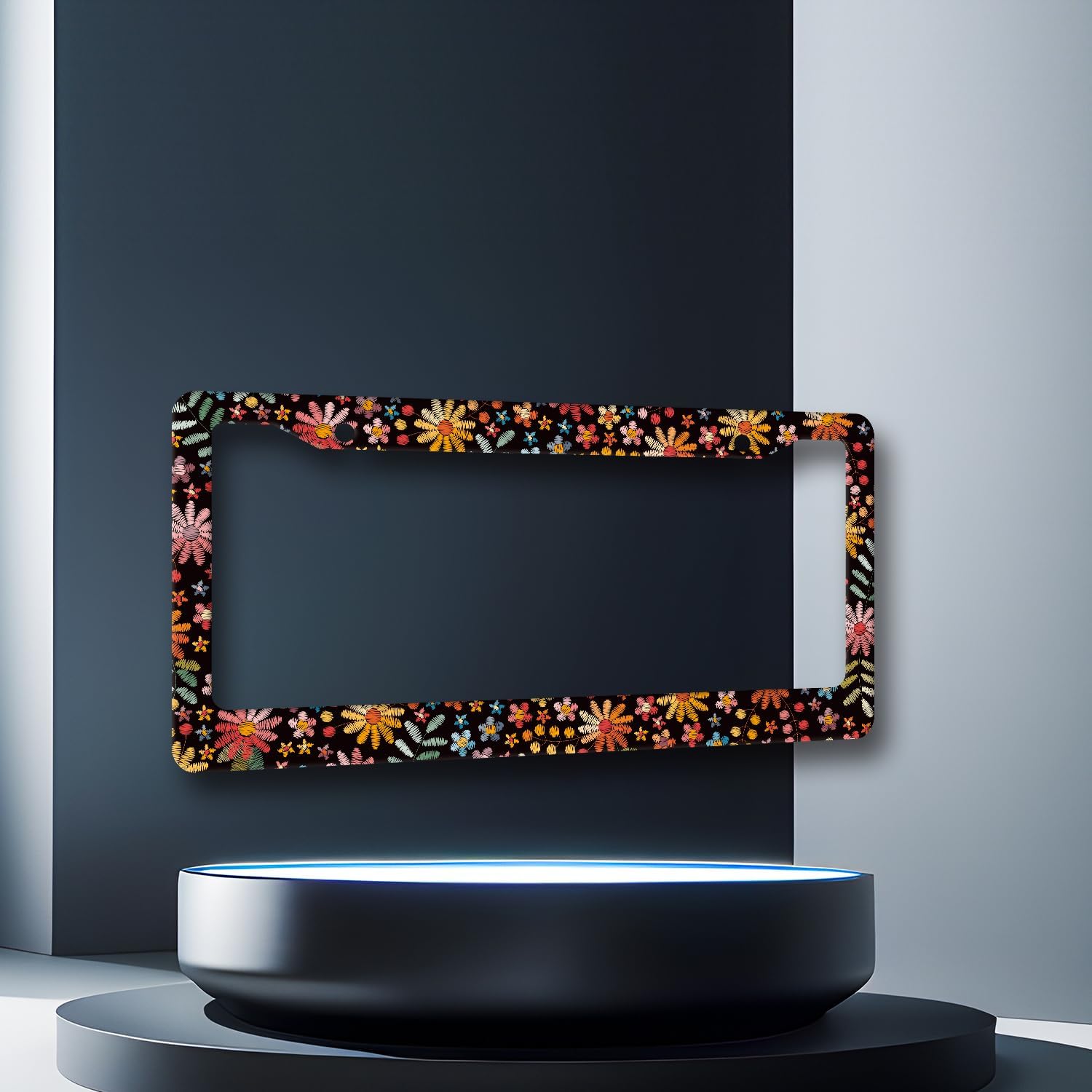 Beautiful Flowers License Plate Frame Colorful Floral License Plate Holder Stainless Steel Flower Colorful Car Accessories Decoration 6.3"X12.3" with 2 Holes Screws