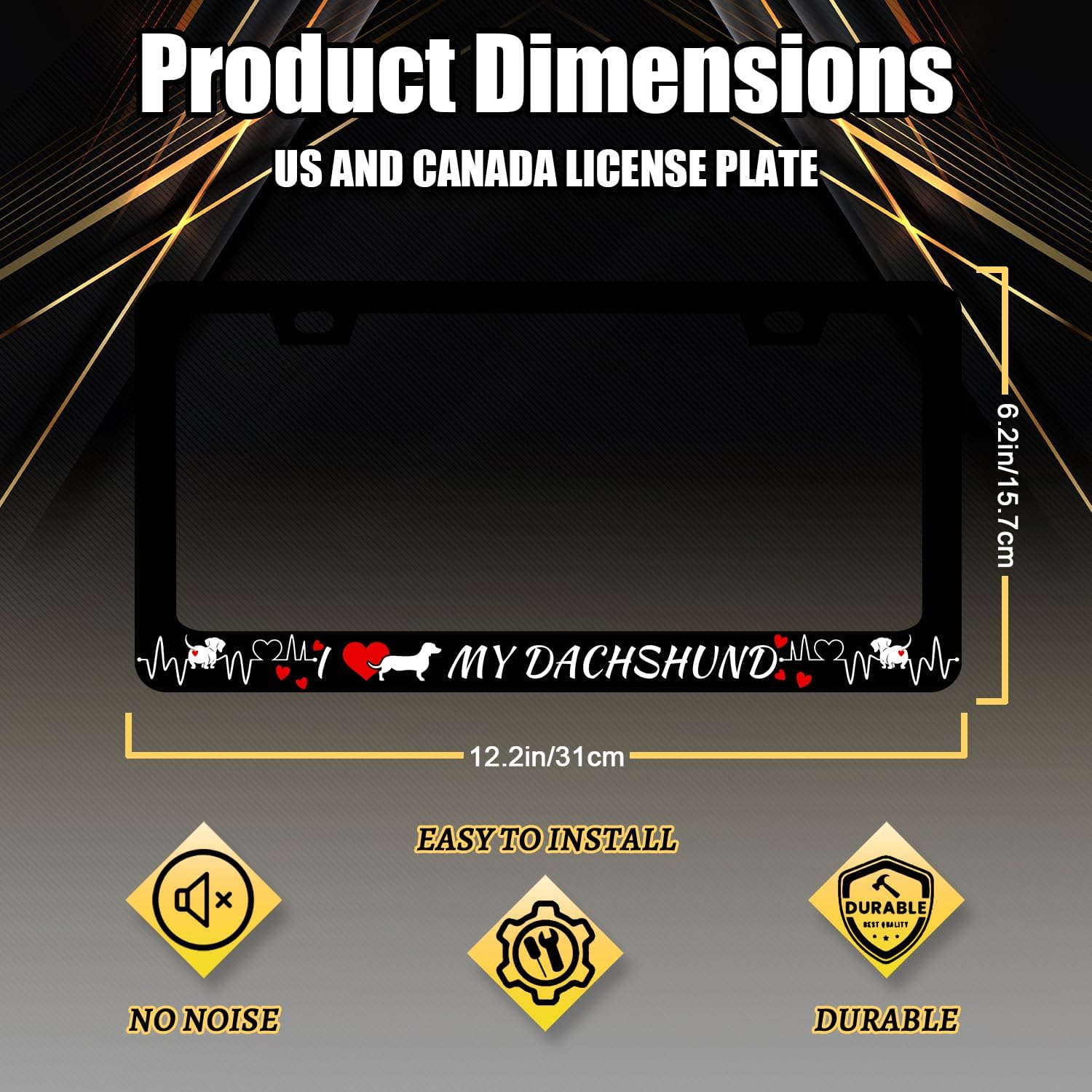 - Size: The size of the license plate frame is 12.3" x 6.3" , it fits all standard size US and Canada vehicle license plates.Fashion design frame fits perfectly on your car license plate.