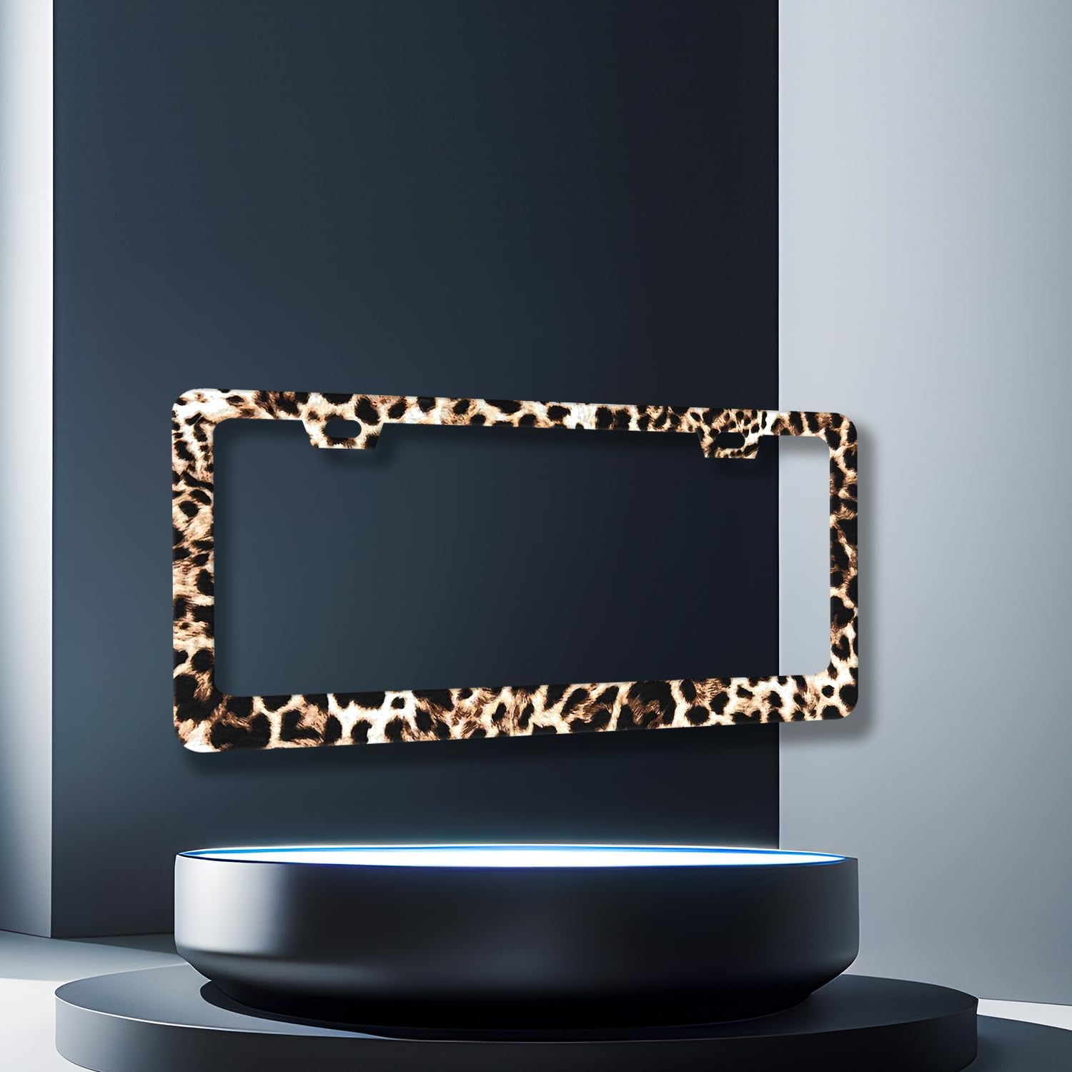 Brown Leopard License Plate Frame Animals License Plate Holder Stainless Steel Colorful Car Accessories Decoration 6.3"X12.3" with 2 Holes Screws
