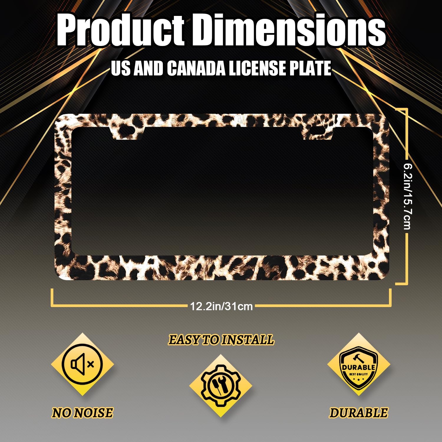 - Size: The size of the license plate frame is 12.3" x 6.3" , it fits all standard size US and Canada vehicle license plates.Fashion design frame fits perfectly on your car license plate.
