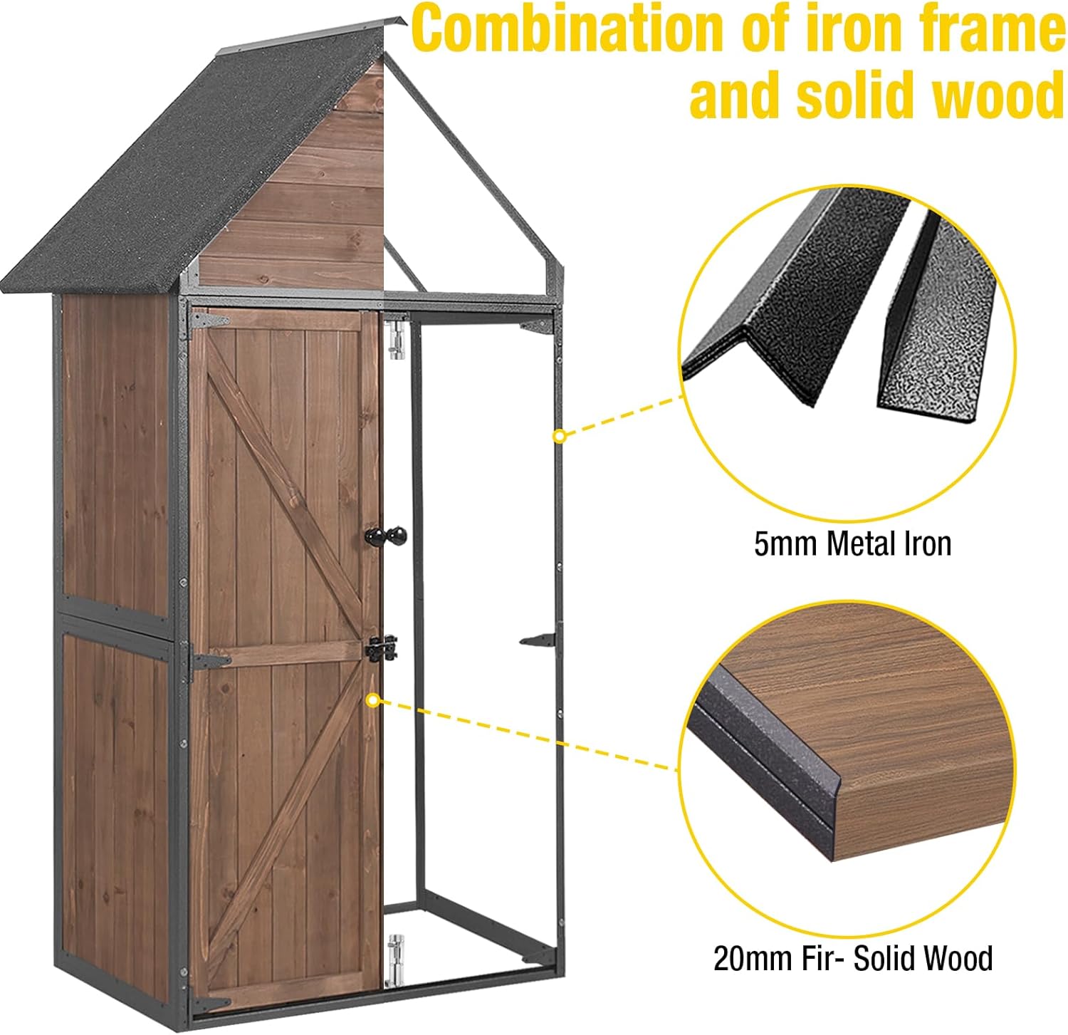 Outdoor Storage Shed,Vertical Wooden Tool Shed with Waterproof Roof,Adjustable 3 Tiers Shelves,Storage Tool Cabinet Box with Metal Frame Sloped Roof for Backyard Garden Patio Lawn (Dark Brown)