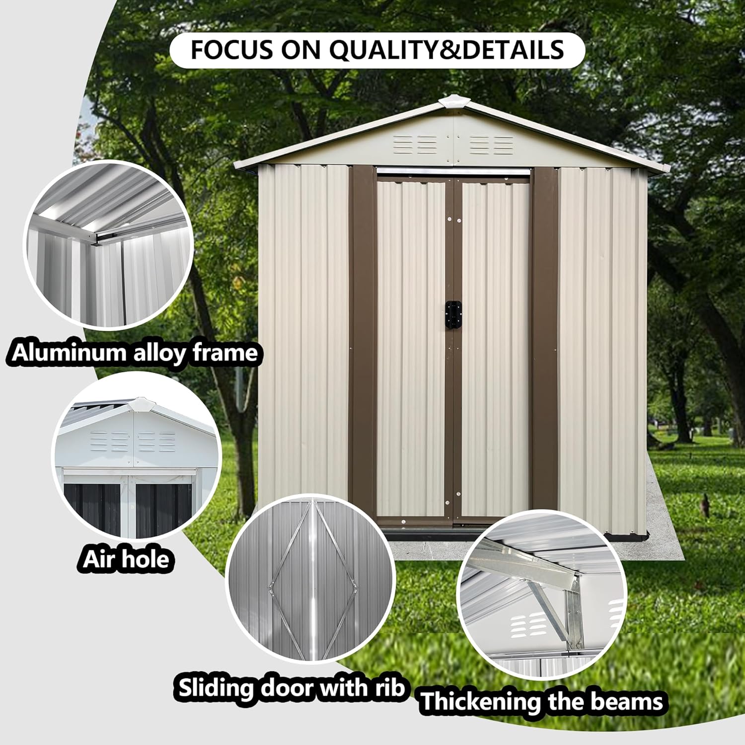 - ๐ก๐๐ฅ๐ฅ-๐ฐ๐๐๐ญ๐ก๐๐ซ ๐๐ญ๐จ๐ซ๐๐ ๐ ๐๐ก๐๐: Our metal shed 5x3 features smooth, lockable sliding doors with handles for easy opening and closing. It serves not only as a safe space for storing garden tools but also as a warm pet house. The sloped roof of the storage building effectively prevents leaks and snow accumulation, while the four integrated punched vents improve airflow, helping to keep your items dry