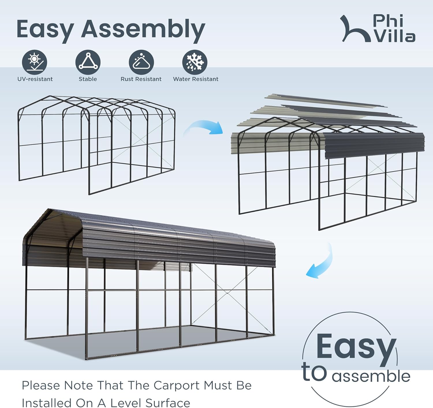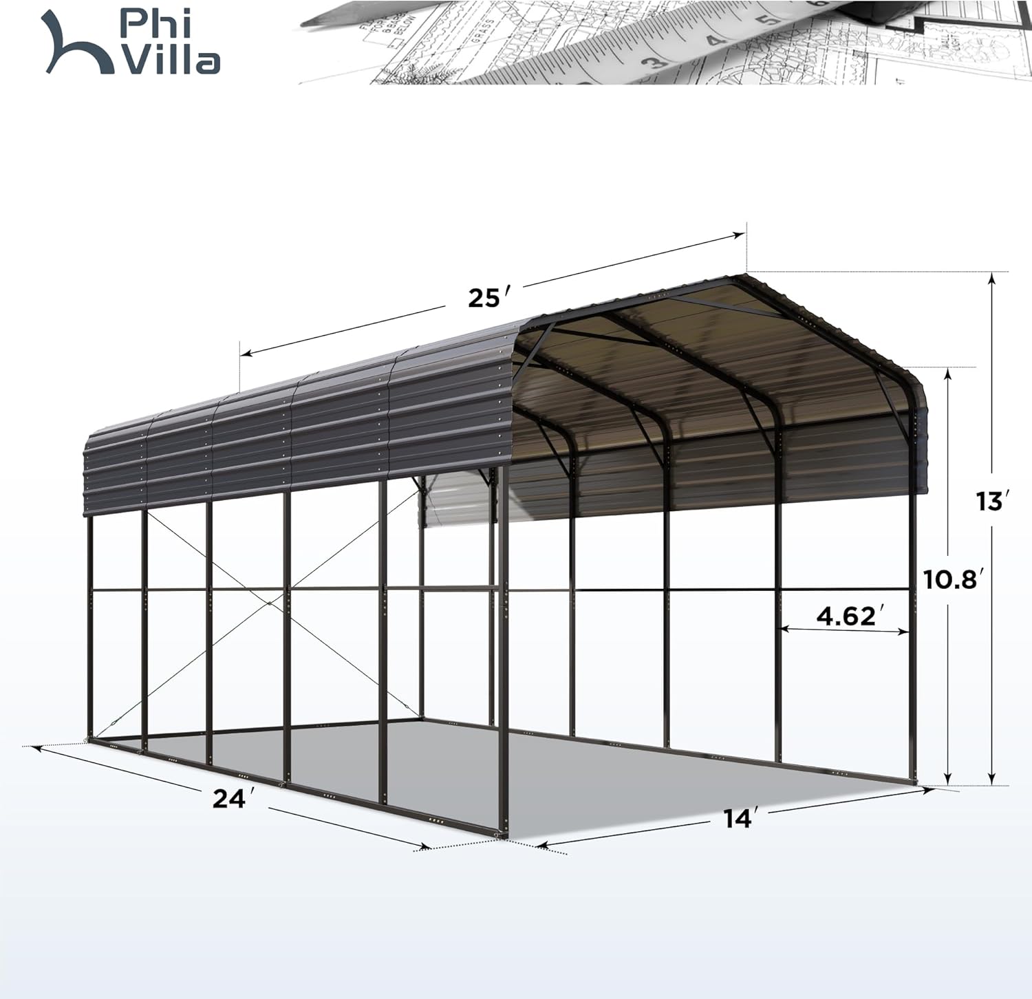 PHI VILLA 25 x 14 ft Heavy Duty Metal Carport with Galvanized Steel Roof for RVs, Cars, Boats, and Tractors
