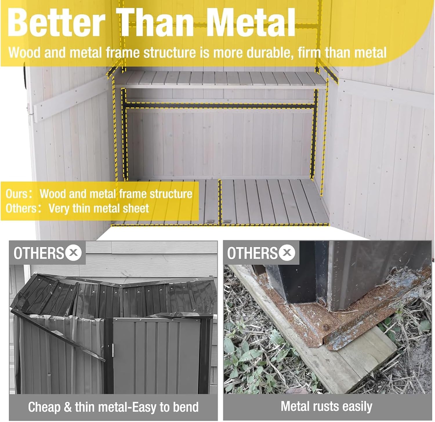 - All-Metal Frame for Superior Strength: This outdoor storage shed features a fully metal-framed panel design, offering unmatched durability and stability compared to plastic or resin storage sheds