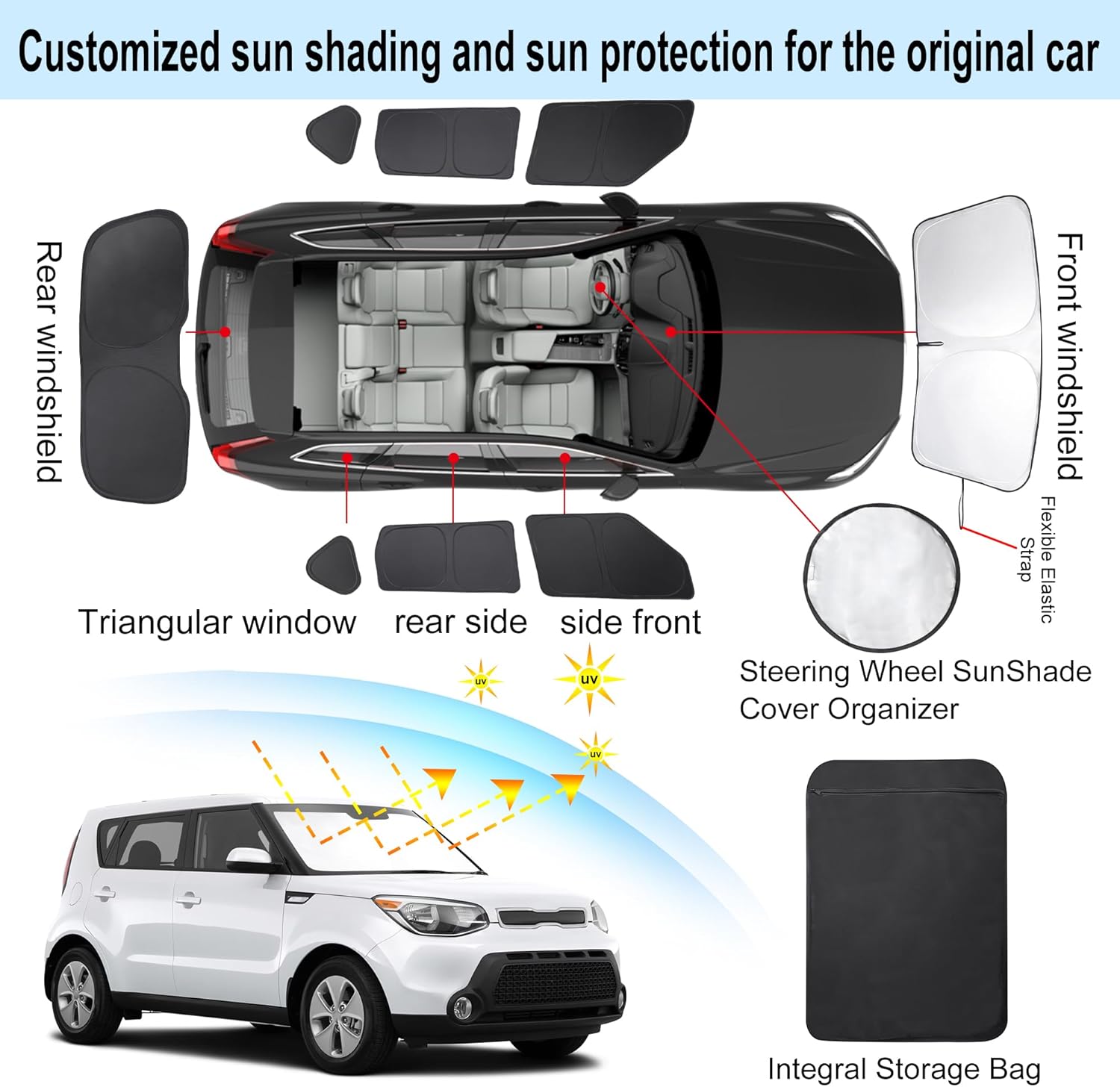 - Customized Design:The sun shade custom fit for Kia Soul 2014-2019.Our window shade is according to the car size design,perfectly fit your car and does not need to trim.windshield sun shade solve the problem of light leakage and incompatibility of the old umbrellas.The sunshade designed for Kia Soul 2014-2019.