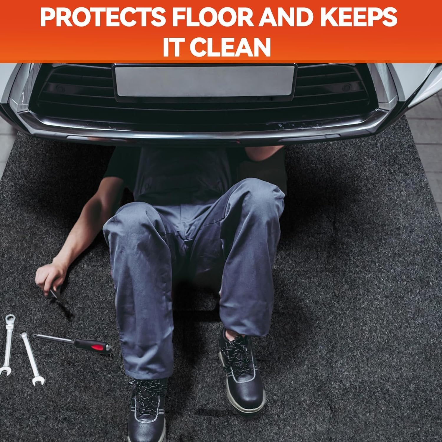 - BIG UPGRADE: Our heavy-duty oil spill mats are made of a stronger and more durable rubber bottom, don't tear as easily as plastic backing, feature excellent anti-slip properties, and can withstand high temperatures. Protects concrete, epoxy, and tile floors from costly damage, ideal for cars, motorcycles, and workshop tools