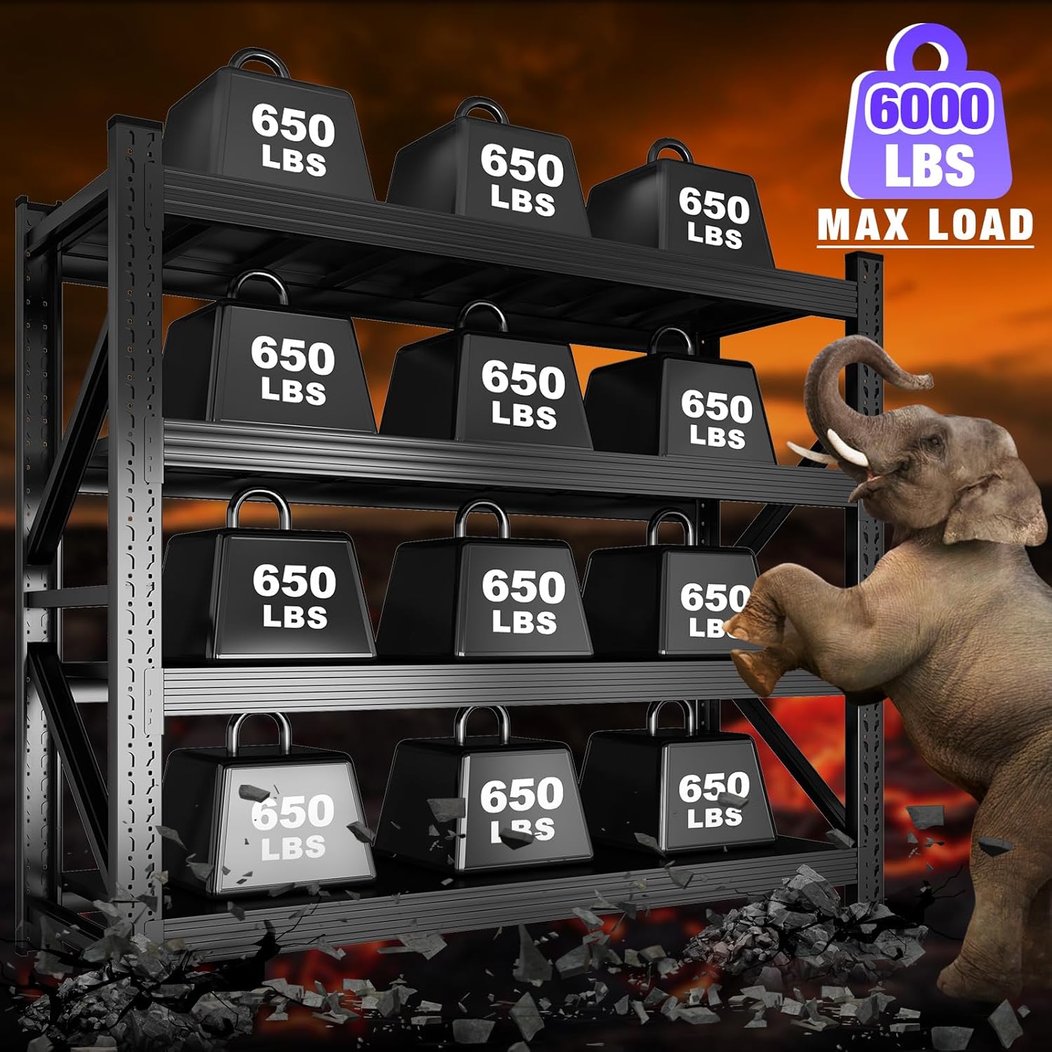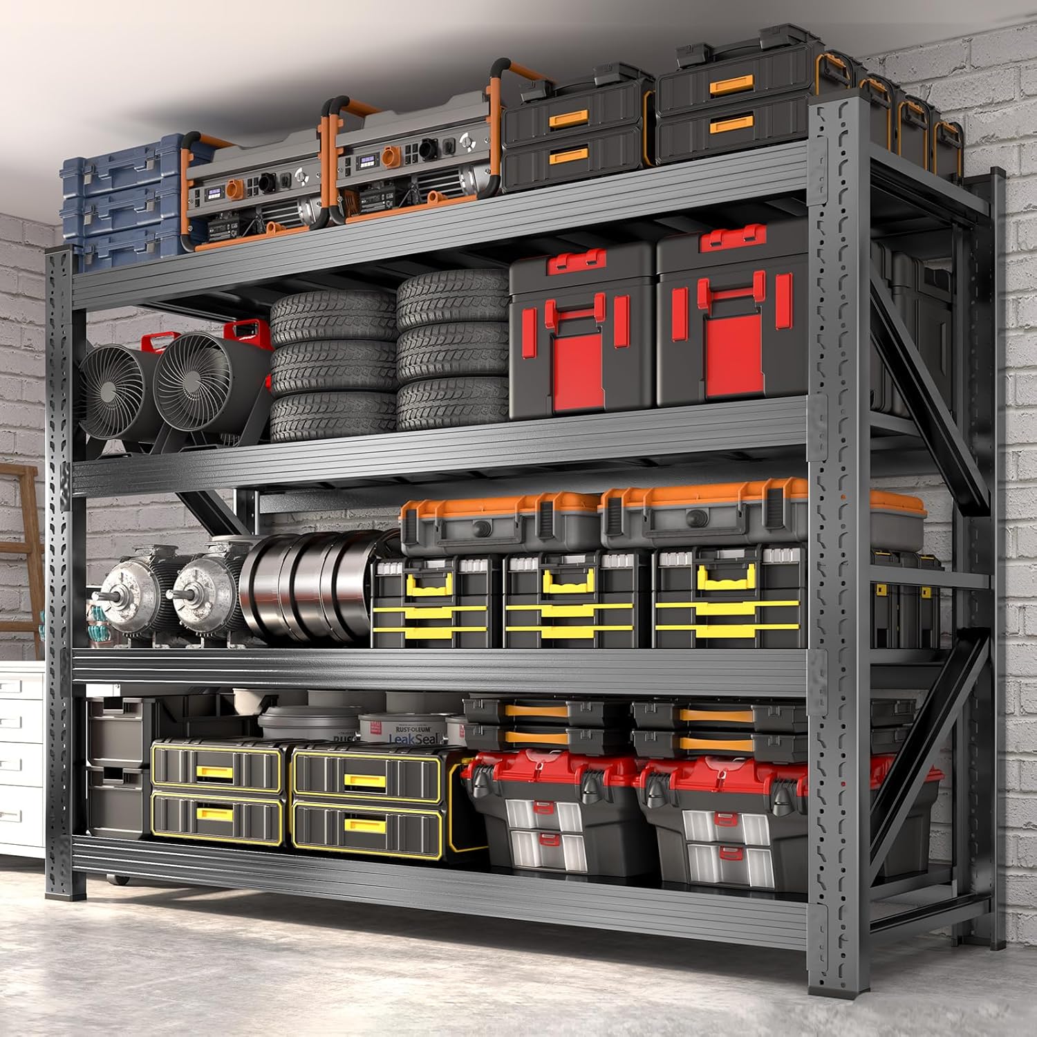 Metal Garage Shelving Unit, Heavy Duty 4-Tier Adjustable Storage Rack, 6000 LBS Loads Industrial Utility Shelves for Garages, Warehouses, Kitchen, Black, 71" W x 24" D x 71" H