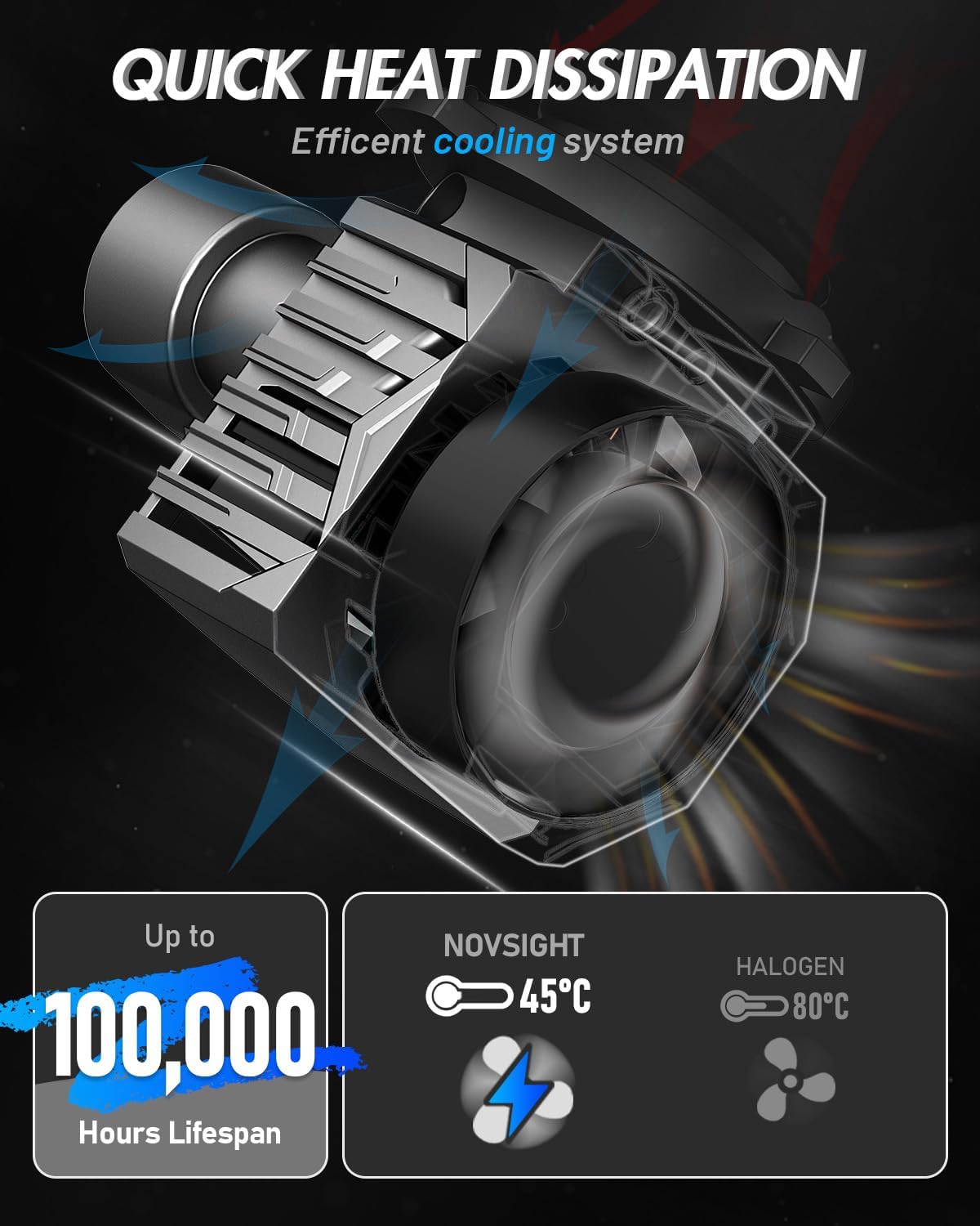 - 【Efficient Heat Dissipation】Equipped with an advanced heat - dissipation system. It operates at a significantly lower temperature than traditional halogen bulbs. This excellent heat - dissipation performance dramatically extends the bulb's lifespan to 100,000 hours. It reduces the hassle and cost of frequent replacements