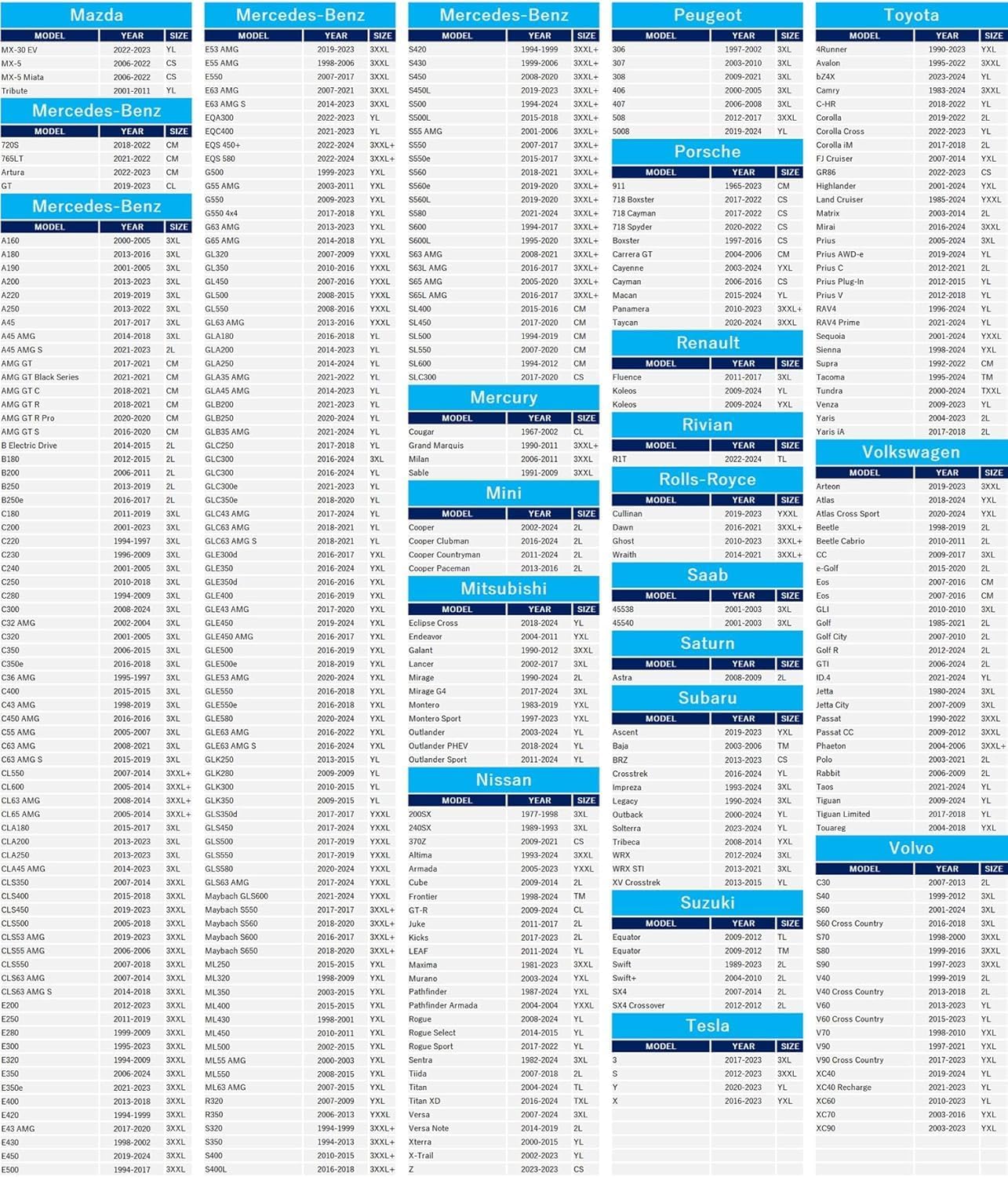 - Material 300D Oxford : Vehicle Service Type Car, Fit for Acura RDX; Fit for Alfa Romeo Stelvio; Fit for Audi A4 allroad, A5 Sportback, Q3, Q3 Quattro, Q4 e-tron, Q4 e-tron Sportback, Q5, Q5 PHEV, Q5 Sportback, SQ5, SQ5 Sportback, Fit for BMW 3 Series GT, X3, X4; Fit for Buick Encore, Encore GX. Envision, Rendezvous; Fit for Cadillac XT4; Fit for Chevrolet Blazer, Captiva Sport, Equinox, HHR, Trailblazer, Trax; Fit for Chrysler PT Cruiser, Fit for Dodge Nitro; Fit for Ford Bronco Sport, Escape, Mustang Mach-E; Fit for Genesis GV70; Fit for GMC Terrain; Fit for Honda CR-V, Element; Fit for Hyundai Elantra GT, Ioniq 5, Kona, Kona Electric, Kona N, Nexo, Santa Fe, Santa Fe Sport, Tucson, Venue, Fit for INFINITI EX35, EX37, QX30, QX4, QX50, QX55; Fit for Isuzu Trooper; Fit for Jaguar E-Pace, F-Pace, I-Pace; Fit for Jeep Cherokee, Compass, Liberty, Patriot, Renegade, Wrangler, Wrangler JK, Fit for Land Rover Freelander, LR2, Range Rover Evoque; Fit for Lexus NX, UX; Fit for Lincoln Corsair, MKC; Fit for Tribute, Fit for Mercedes EQA300, EQC400, GLA, GLB, GLC, GLK; Fit for Mitsubishi Eclipse Cross, Outlander, Outlander PHEV, Outlander Sport; Fit for Nissan Rogue, Rogue Select, Rogue Sport, Xterra, X-Trail; Fit for Peugeot 5008, Fit for Porsche Macan; Fit for Renault Koleos; Fit for Subaru Crosstrek, Forester, Outback, XV Crosstrek; Fit for Tesla Y; Fit for Toyota C-HR, Corolla Cross, Prius AWD-e, Prius Plug-In, Prius V, RAV4, RAV4 Prime, Venza; Fit for Volkswagen ID.4, Taos, Tiguan, Tiguan Limited; Fit for Volvo V60, V60 Cross Country, XC40, XC60, SUV Car, Fit for Acura RDX; Fit for Alfa Romeo Stelvio; Fit for Audi A4 allroad, A5 Sportback, Q3, Q3 Quattro, Q4 e-t… See more