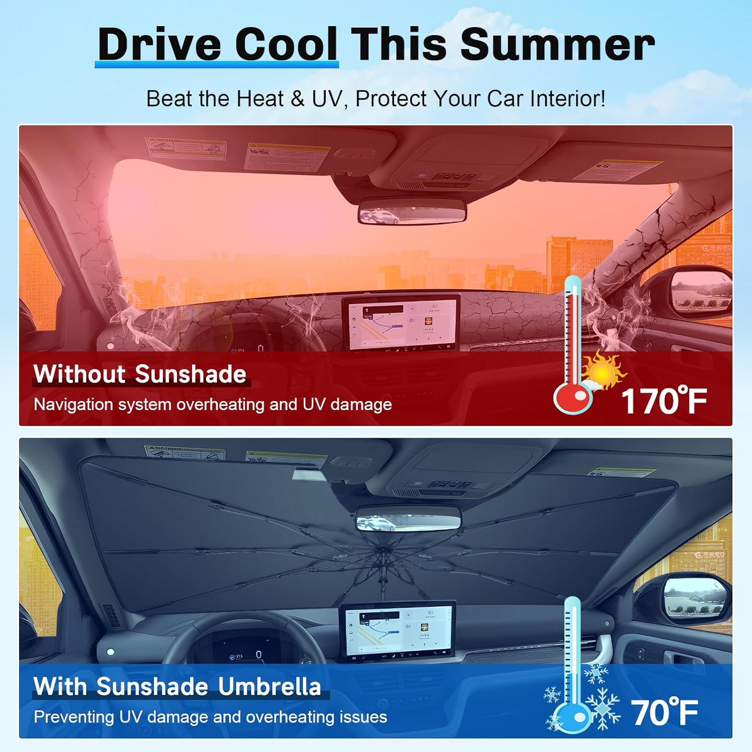 - 1. Sun & Heat Insulation: Windshield Umbrella Sunshade for 2020-2025 Ford Explorer Accessories, 99.9% UV protection, upgraded wrinkle-resistant fabric reflects heat, keeps car cool. Protects interior from fading & cracking, ensuring comfort on hottest days
