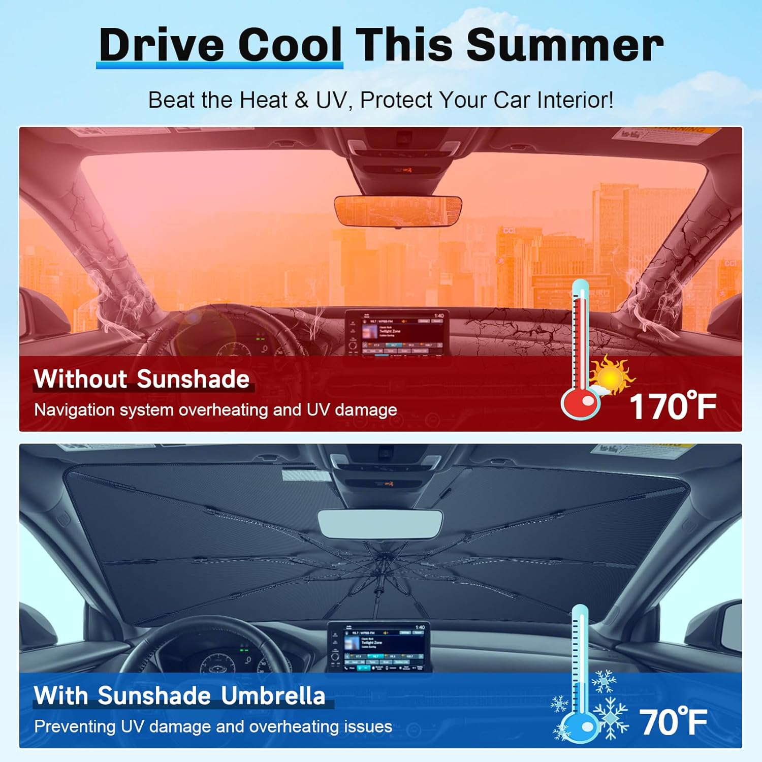 - 4. Practical & Scratch-Free: This 2024 2025 HRV Sunshade Umbrella comes with a silicone sleeve to safeguard your dashboard and a flexible TPE handle for scratch-free installation. A must-have for keeping your 2025 HRV cool and UV-protected every day