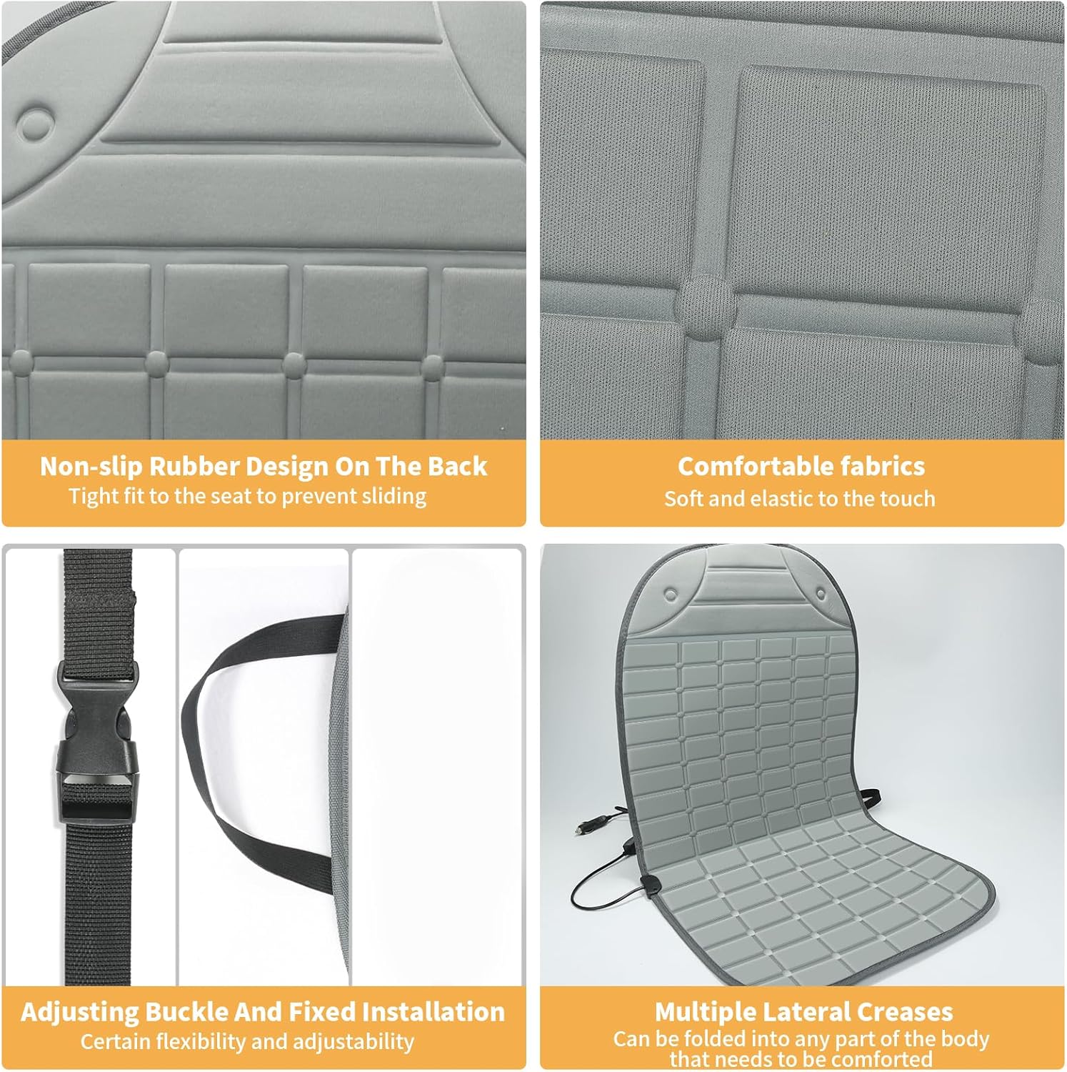 Seat Cover for Cold Weather, Winter Seat Cushion with Adjustanle Buckle for Full Back and Seat (2, Gray)